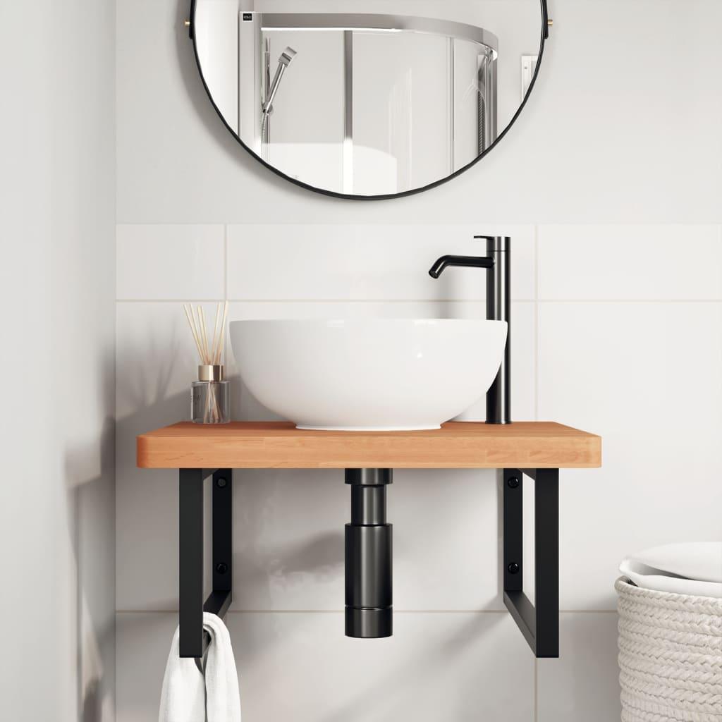 Meuble sous vasque murale acier et bois massif de hêtre FR765309