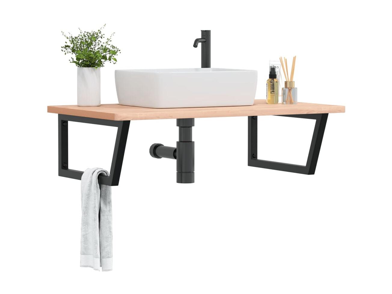 Meuble sous vasque murale acier et bois massif de hêtre FR276053