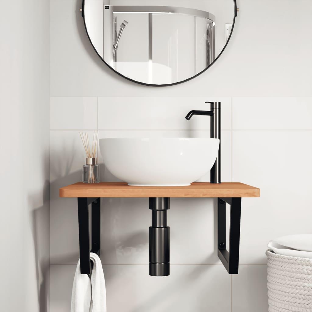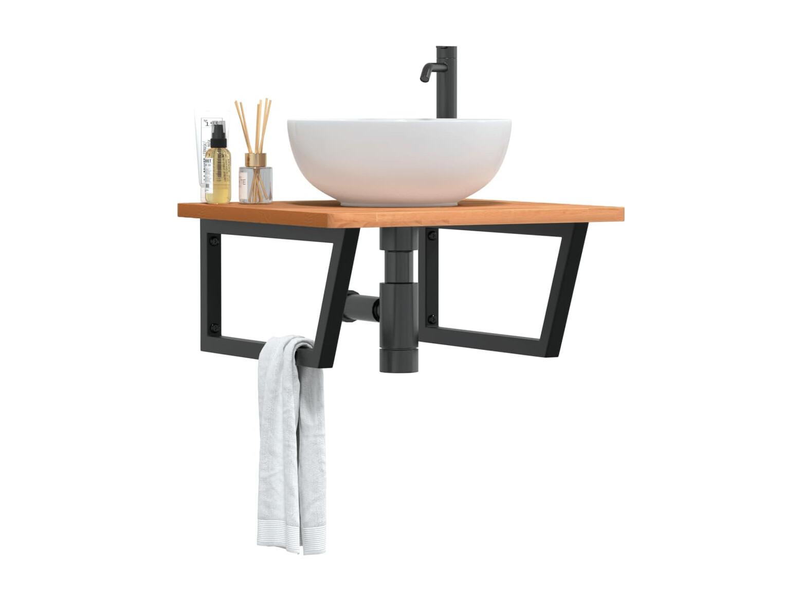 Meuble sous vasque murale acier et bois massif d'acacia FR565512