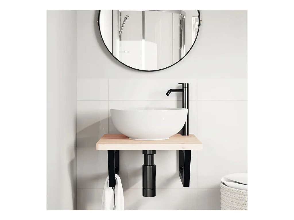 Meuble sous vasque murale acier et bois massif de hêtre FR838167