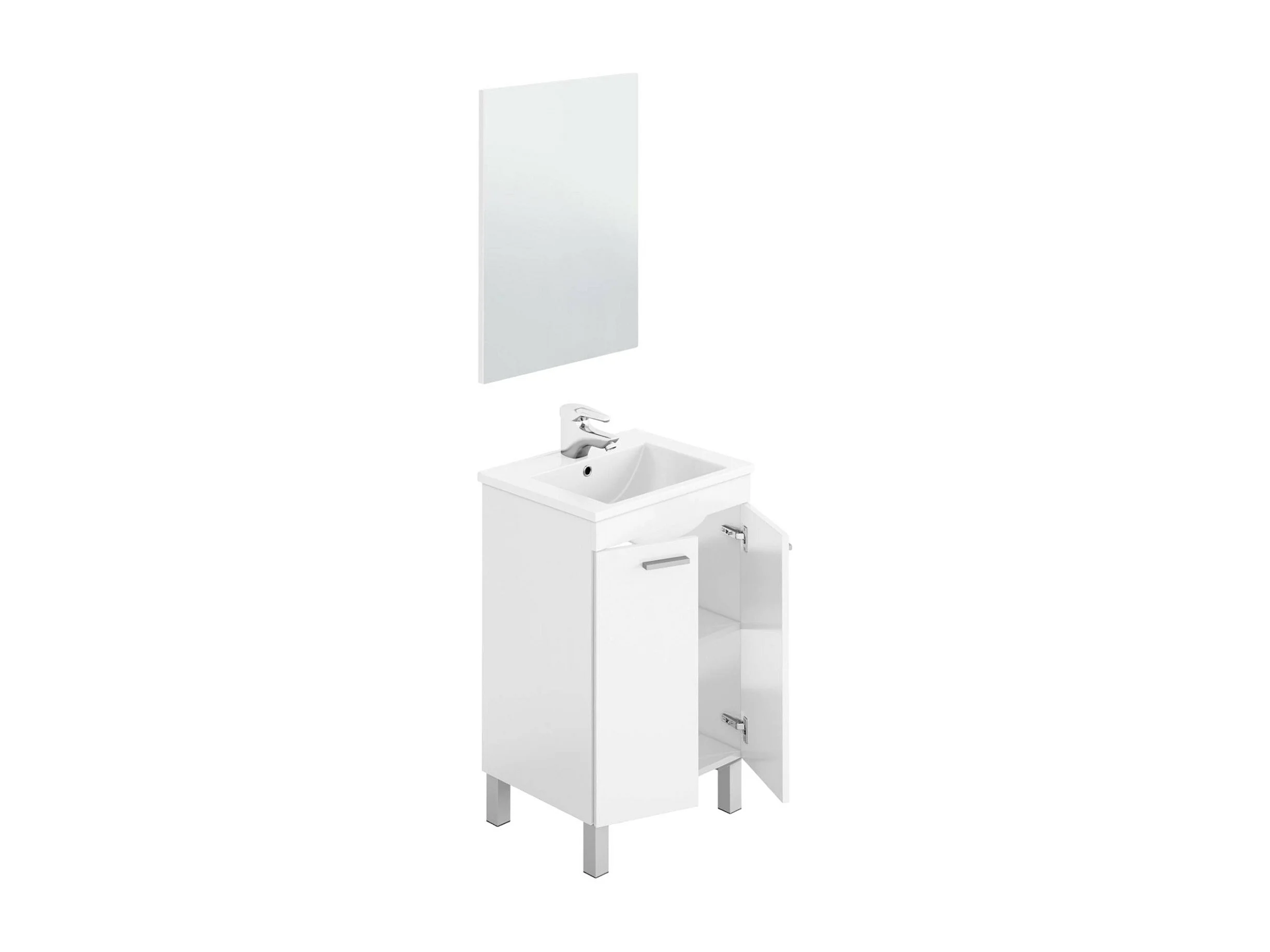 Meuble sous-vasque Naperville, Meuble de salle de bain, armoire 2 portes avec miroir, lavabo non inclus, 50x40h80 cm, Blanc