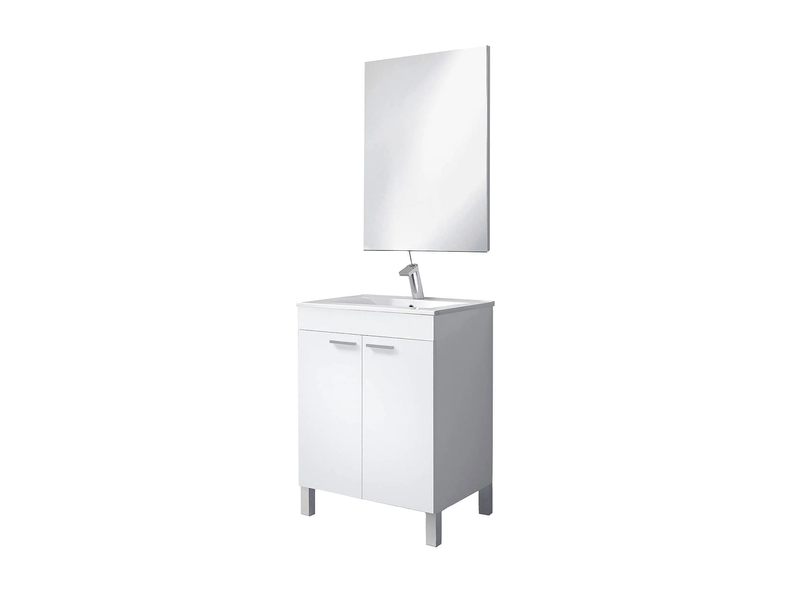 Meuble sous-vasque Naperville, Meuble de salle de bain, armoire 2 portes avec miroir, lavabo non inclus, 60x45h80 cm, Blanc brillant