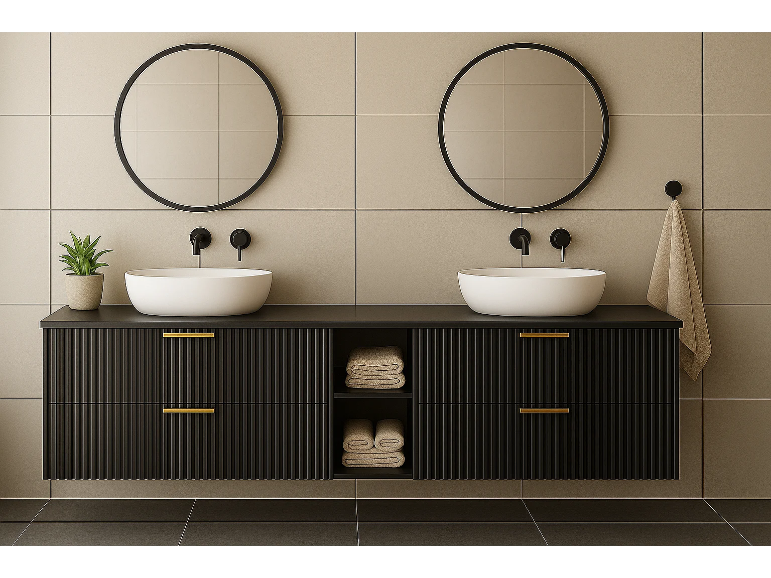 Meuble sous vasque noir FLOW 180 cm avec étagère et plan de travail