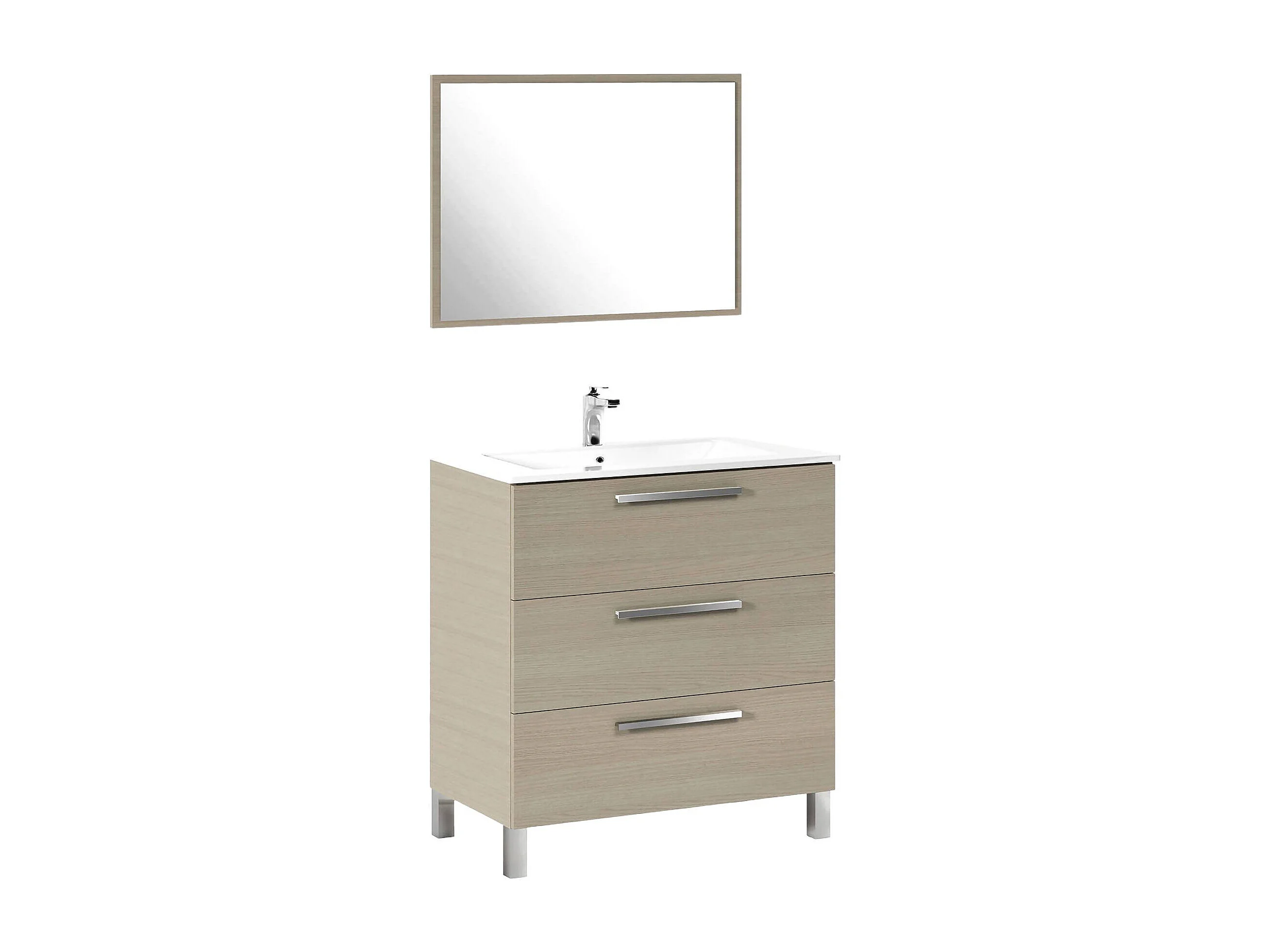 Meuble sous-vasque Palmdale, Meuble de salle de bain, Meuble avec 3 tiroirs et miroir, lavabo non inclus, 80x45h86 cm, Chêne