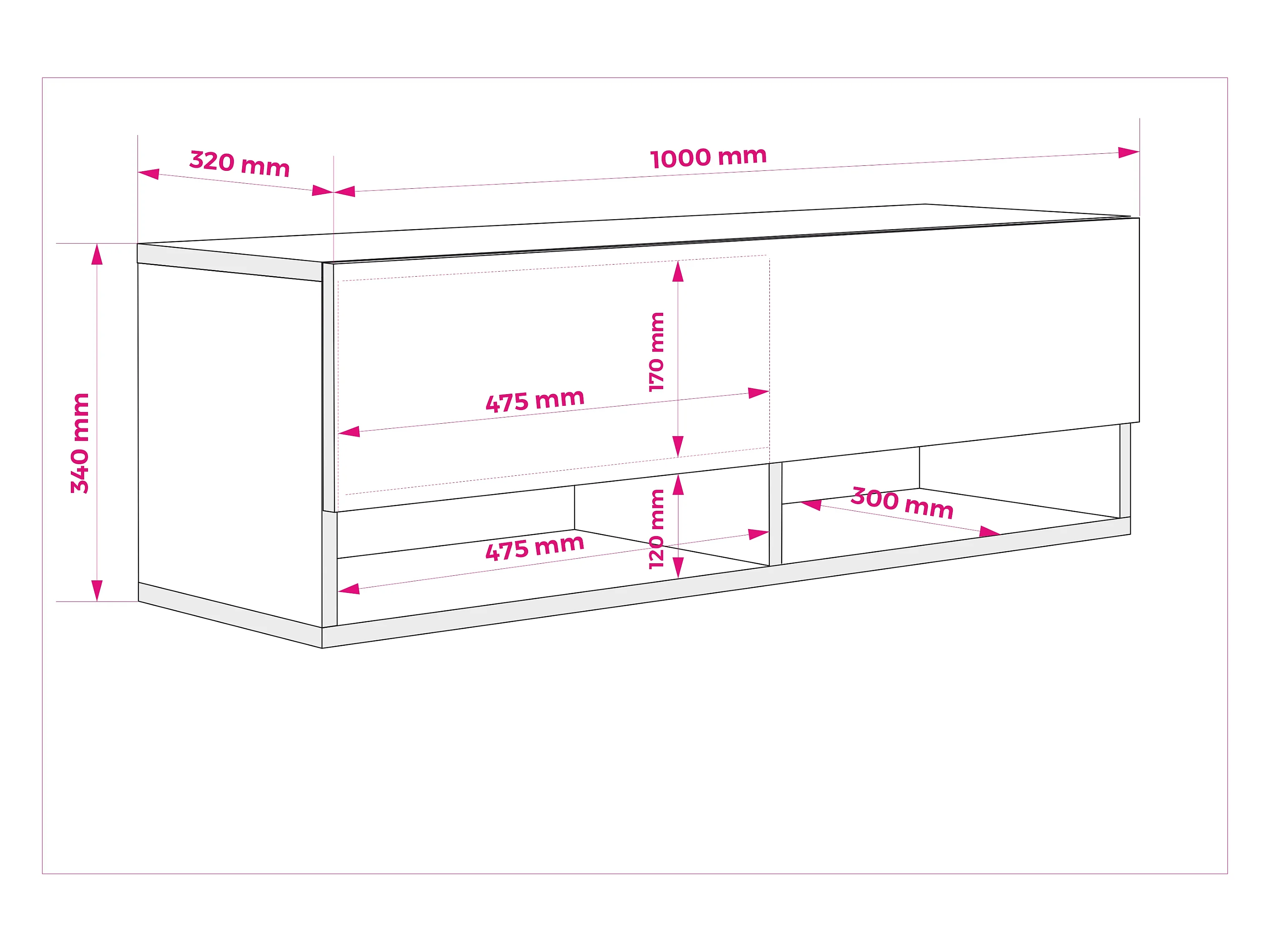 Meuble TV 100 cm Chêne Craft, 100 x 32 x 34 cm