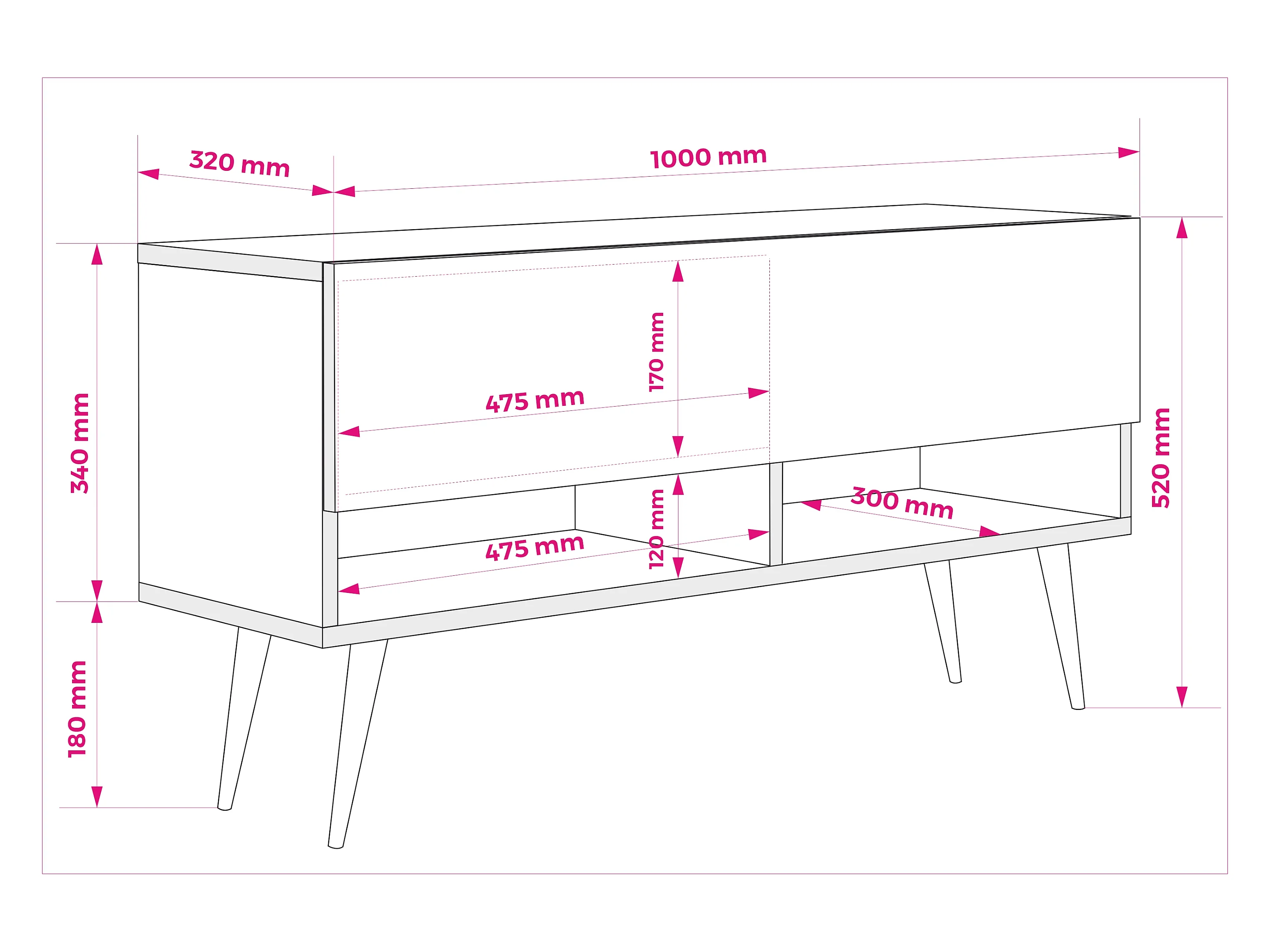 Meuble TV 100 cm Chêne Craft, 100 x 32 x 34 cm