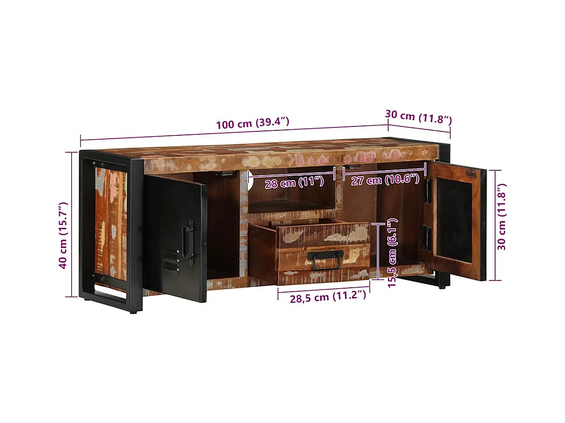 Meuble TV 100x30x40 cm Bois de récupération solide