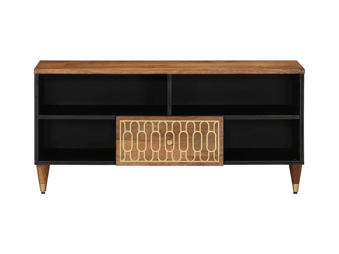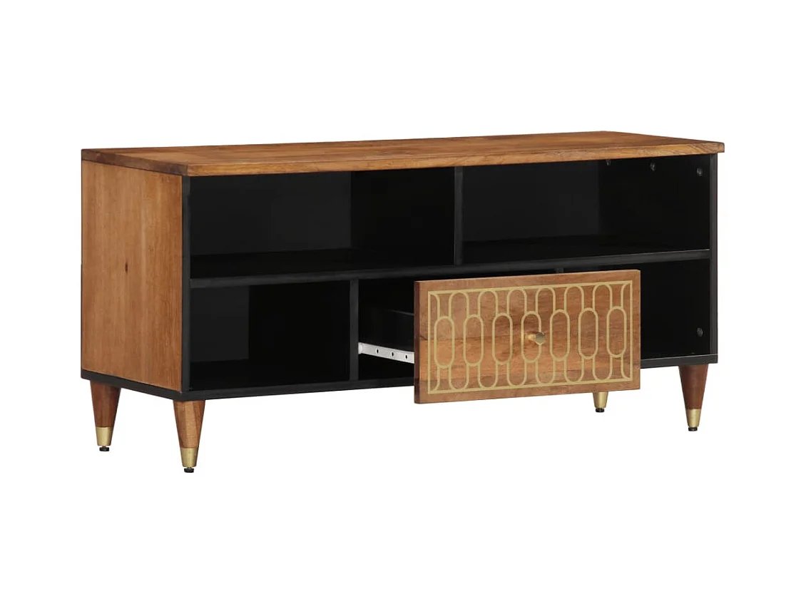 Meuble TV noir 100x33x46 cm bois massif de manguier