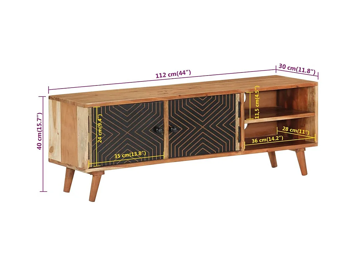 Meuble TV 112x30x40 cm bois d'acacia massif