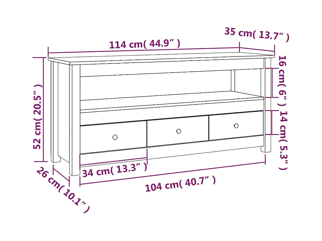Meuble TV 114x35x52 cm Bois de pin massif