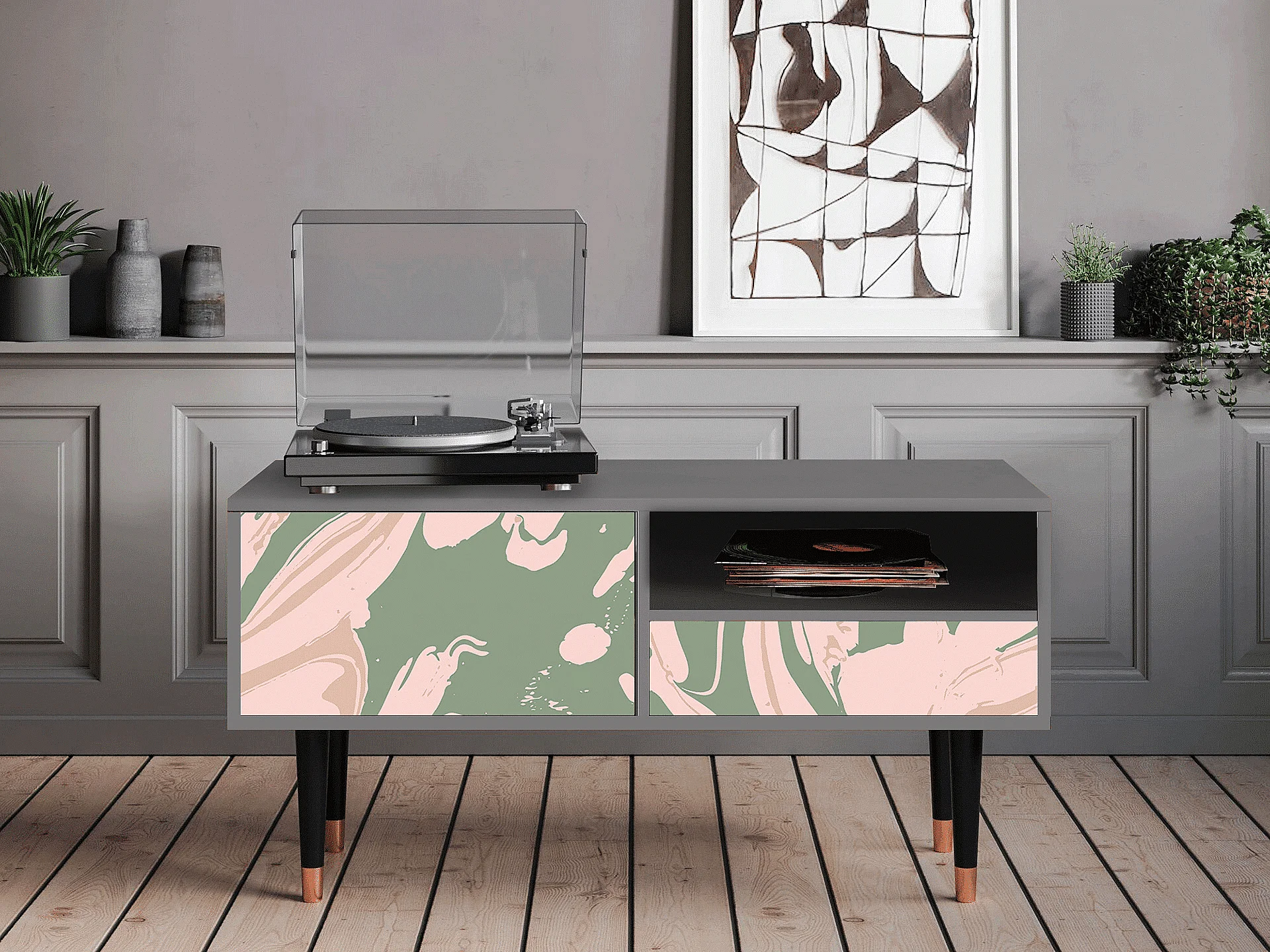 Meuble TV - 115х59х48 cm - T3 - Aquarelle, Gris