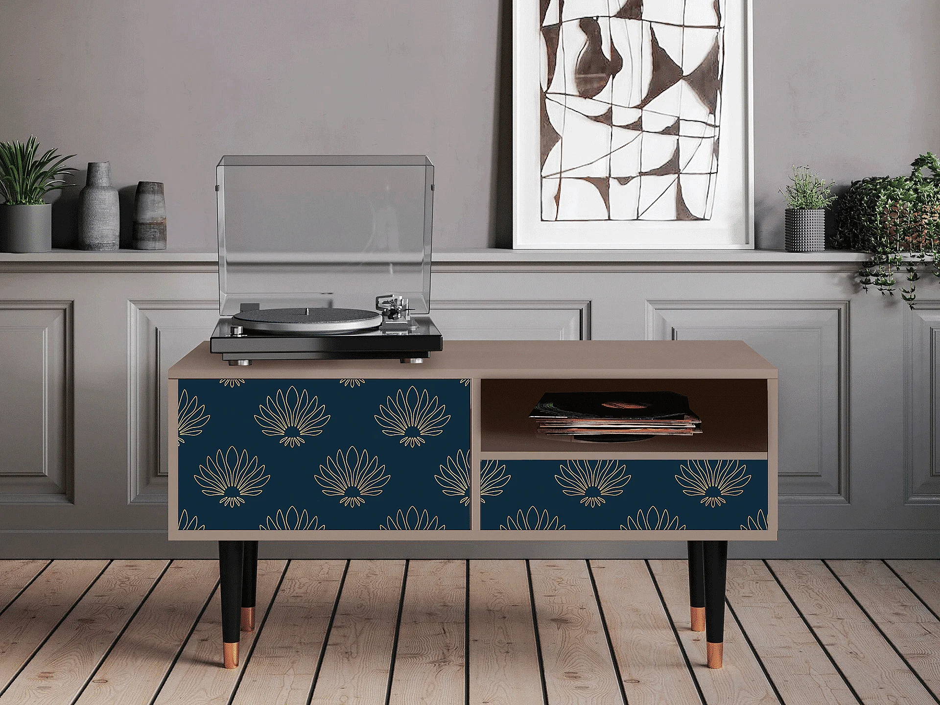 Meuble TV - 115х59х48 cm - T3 - Blue Lotus, Latte
