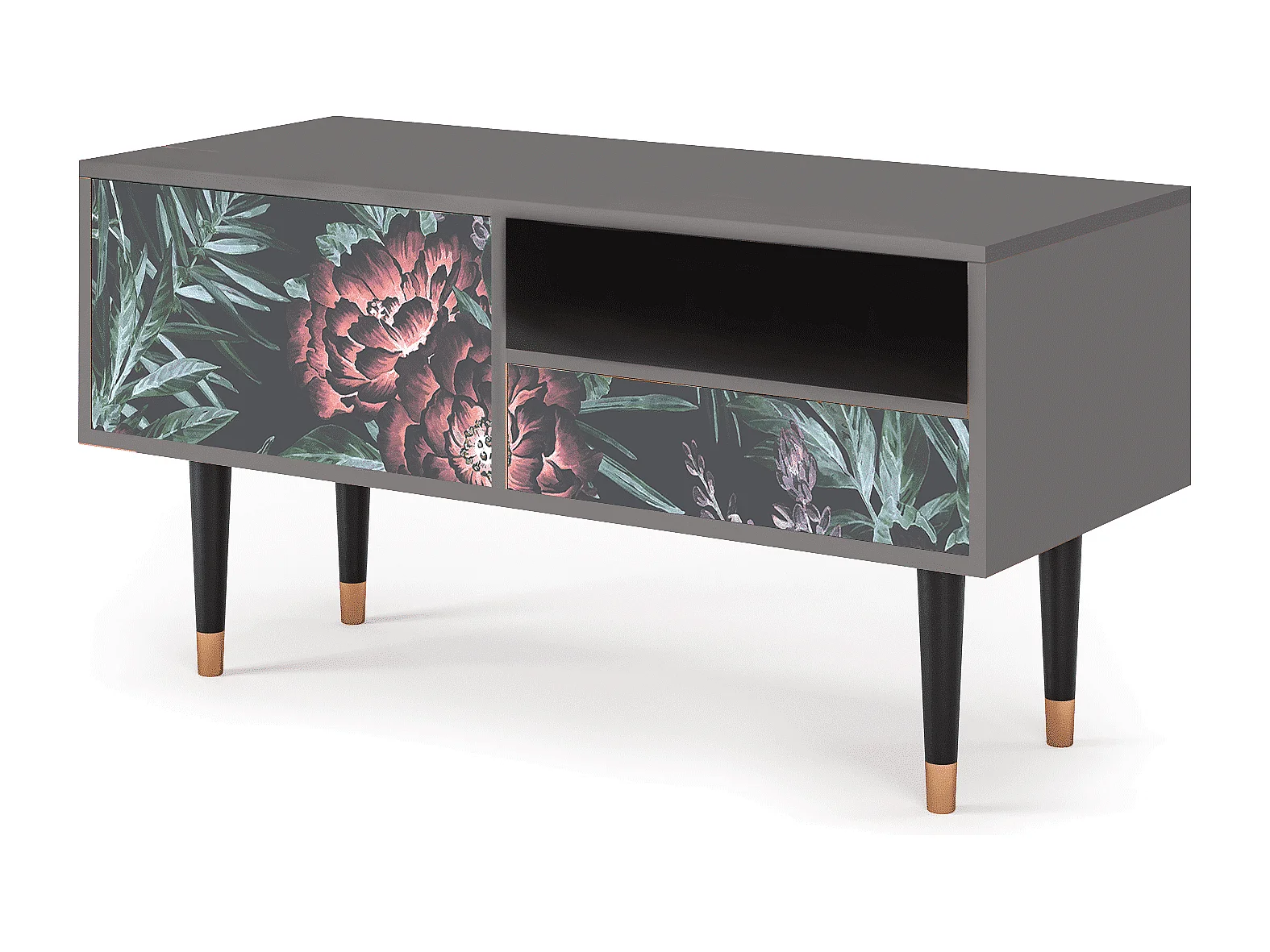 Meuble TV - 115х59х48 cm - T3 - Dark Peonies, Gris