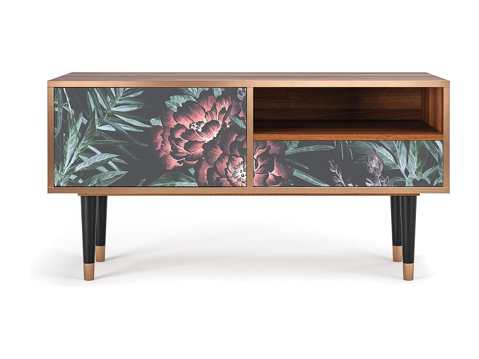 Meuble TV - 115х59х48 cm - T3 - Dark Peonies, Noyer