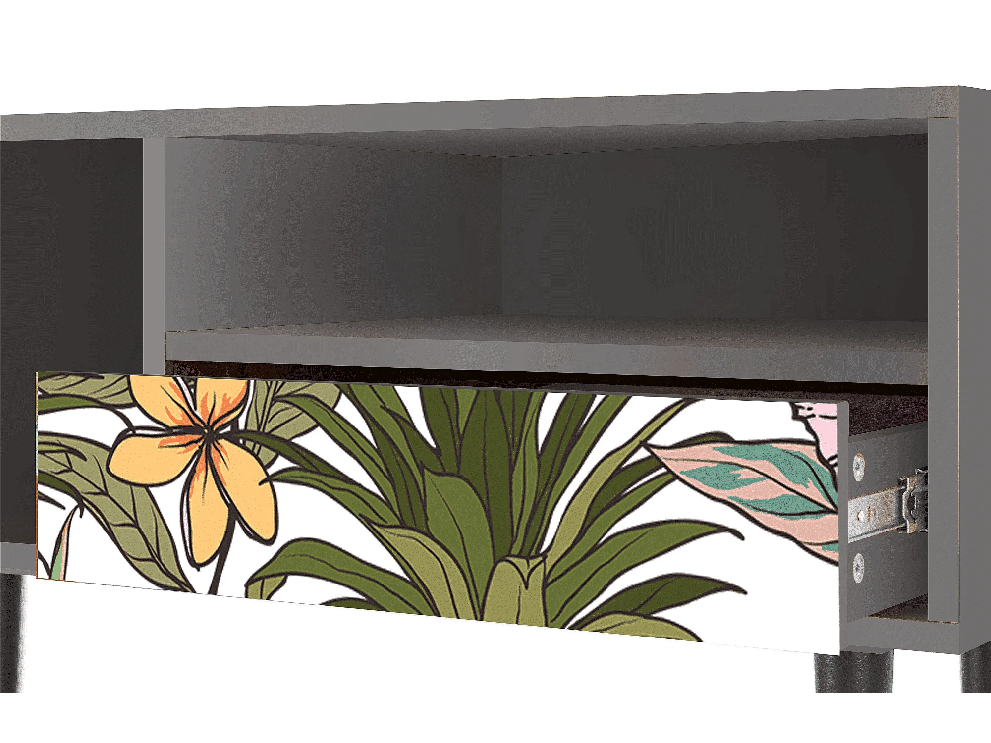 Meuble TV - 115х59х48 cm - T3 - Hindu Daisy, Gris