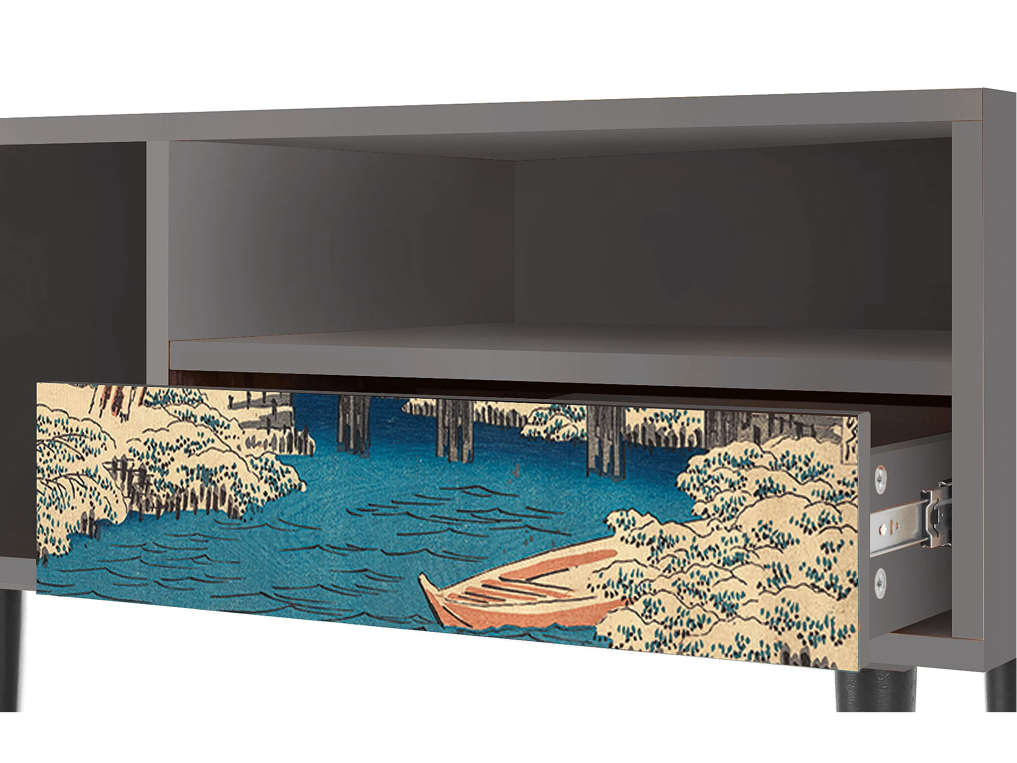 Meuble TV - 115х59х48 cm - T3 - Katabira River, Gris