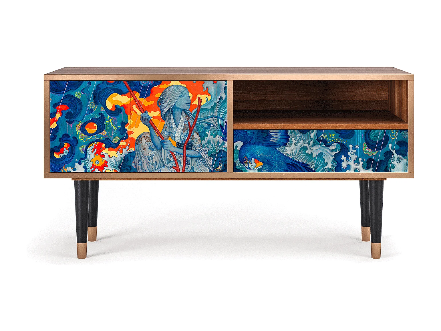 Meuble TV - 115х59х48 cm - T3 - The Girl - James Jean, Noyer