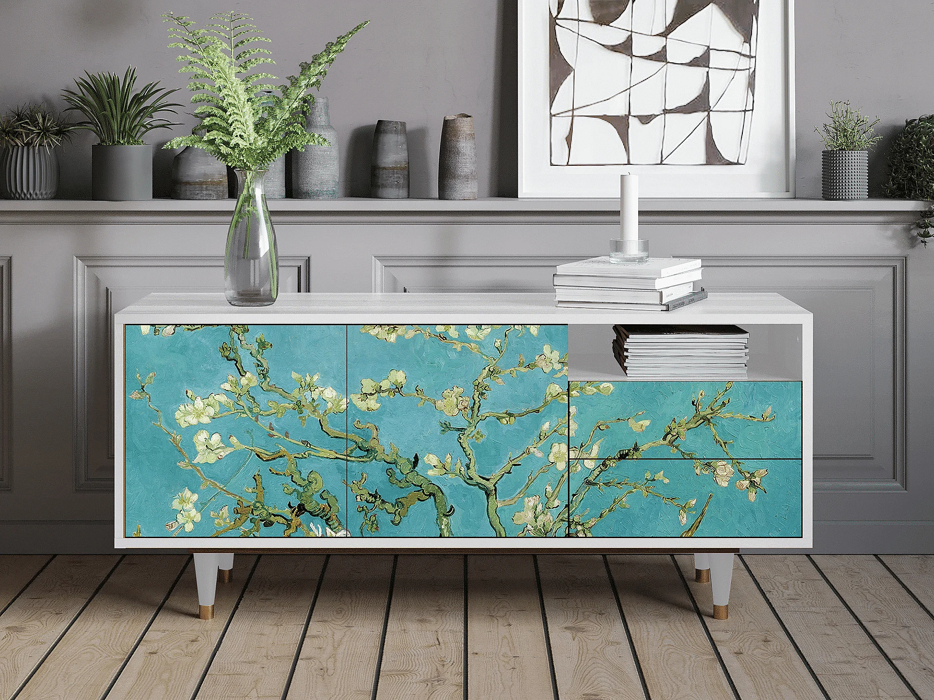 Meuble TV - 125х56х41 cm - T7 - Almond Blossom, Blanc
