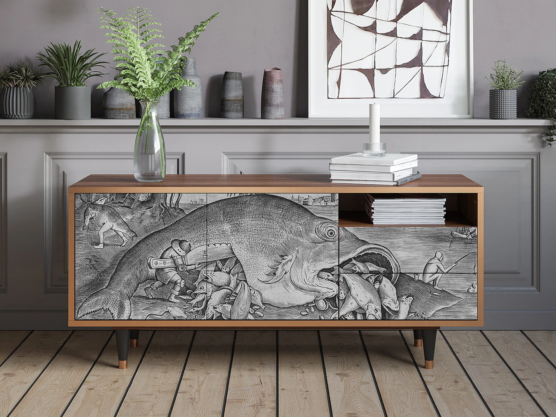 Meuble TV - 125х56х41 cm - T7 - Big Fish Eat Little, Noyer