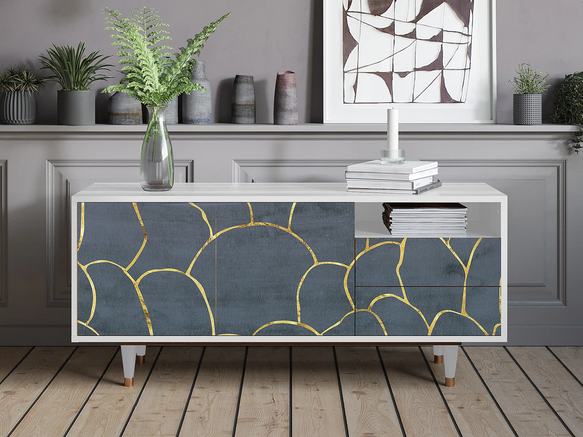 Meuble TV - 125х56х41 cm - T7 - Blue Lagoon, Blanc