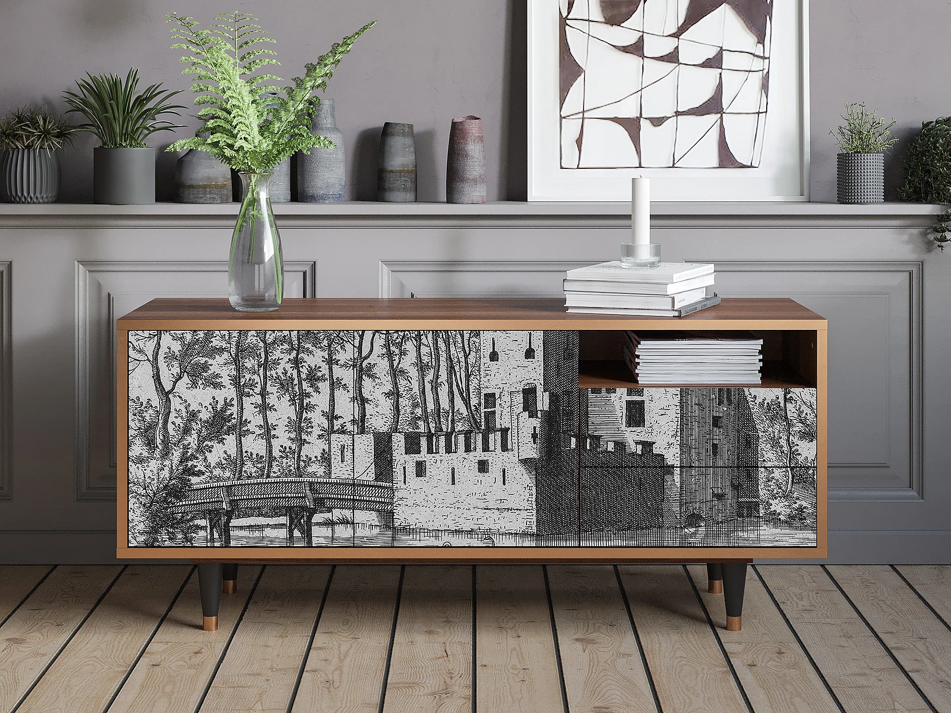 Meuble TV - 125х56х41 cm - T7 - Castle by Breugel, Noyer