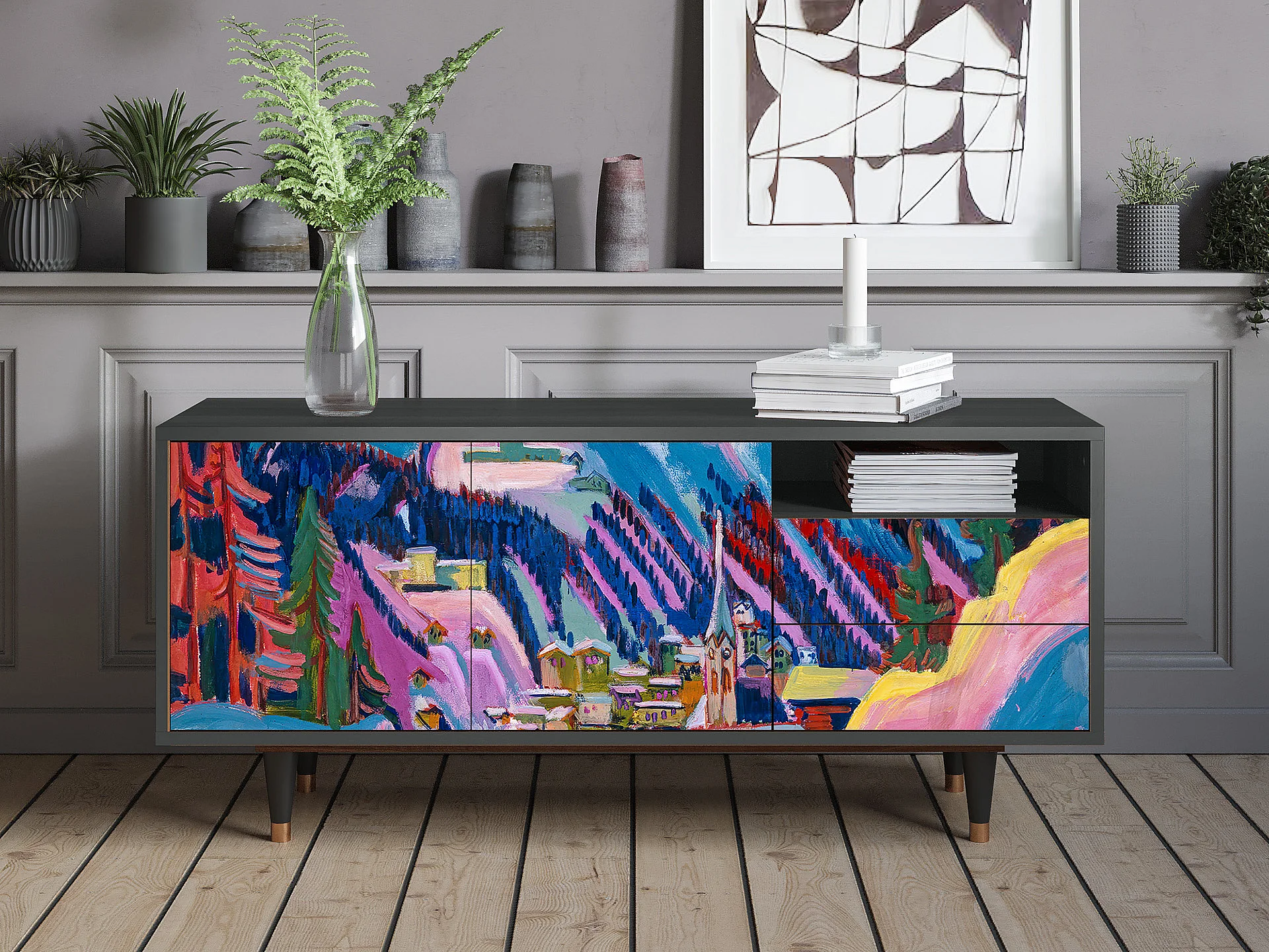 Meuble TV - 125х56х41 cm - T7 - Davos Winter, Anthracite