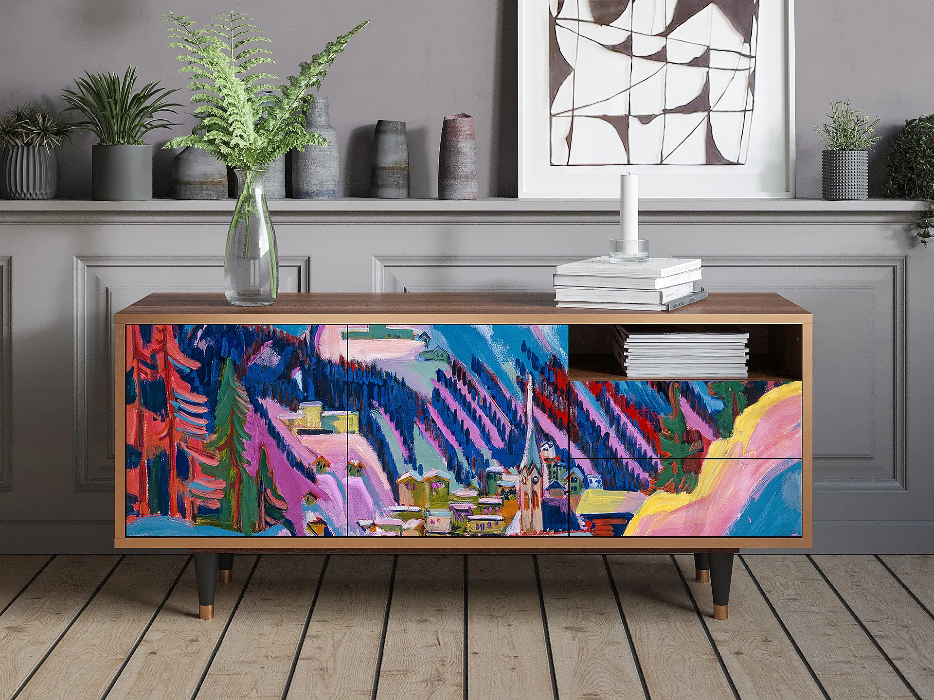 Meuble TV - 125х56х41 cm - T7 - Davos Winter, Noyer