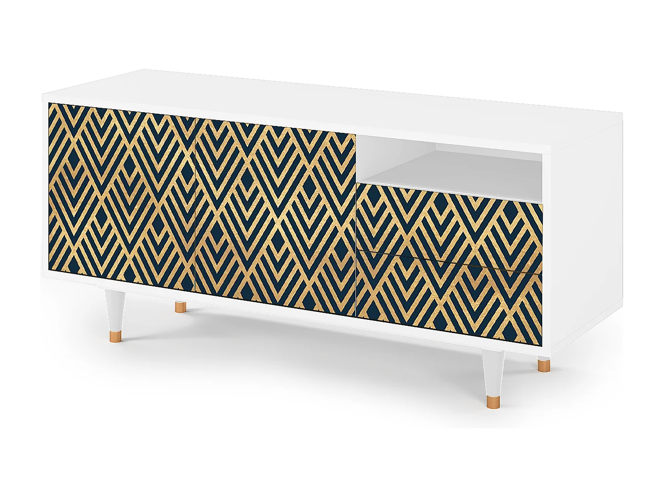 Meuble TV - 125х56х41 cm - T7 - Egypt Triangles, Blanc