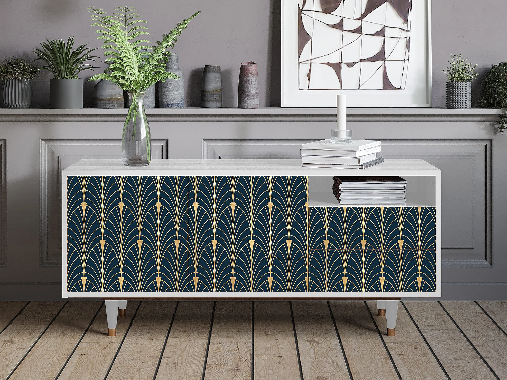 Meuble TV - 125х56х41 cm - T7 - Flower of the Nile, Blanc