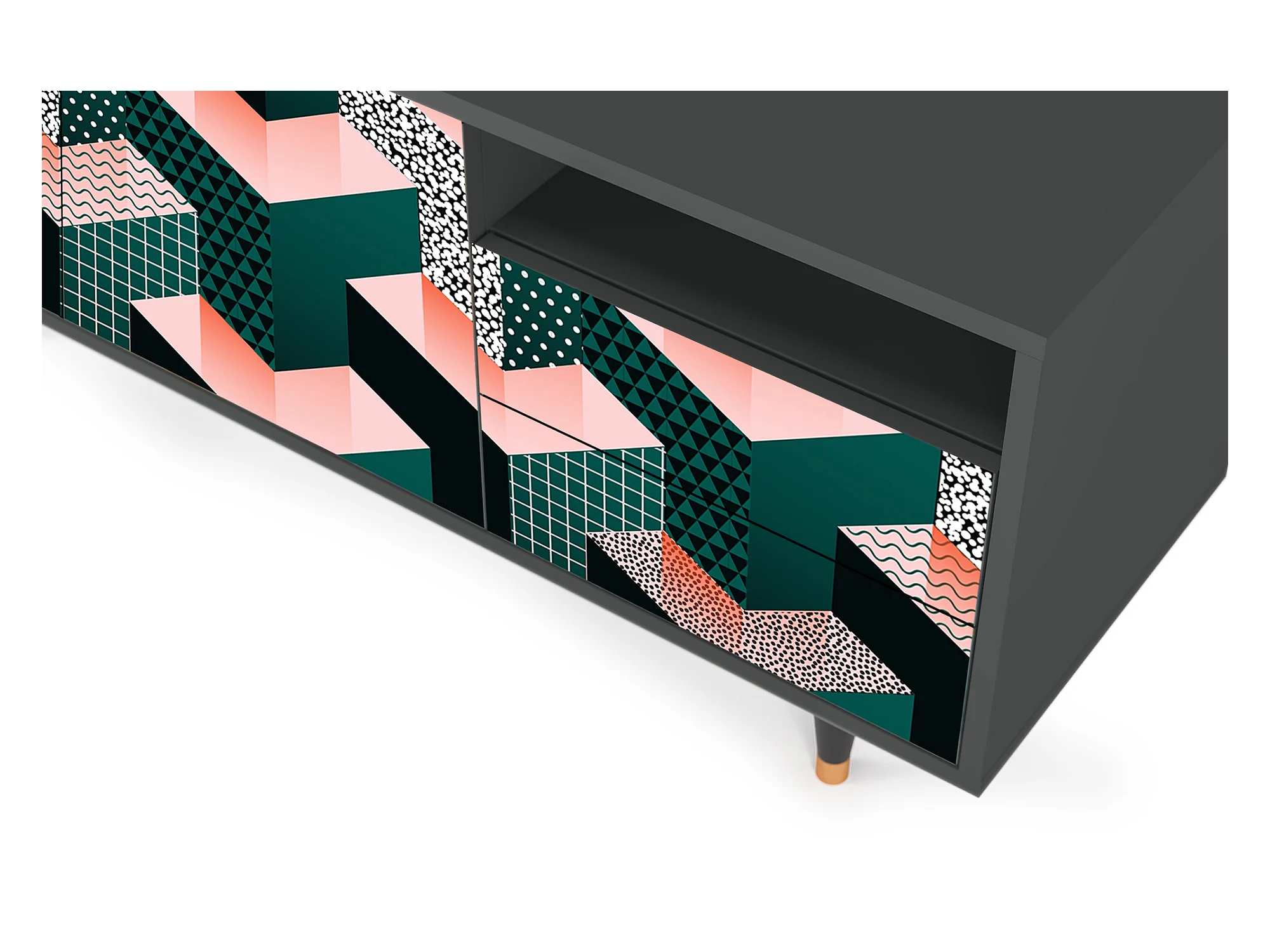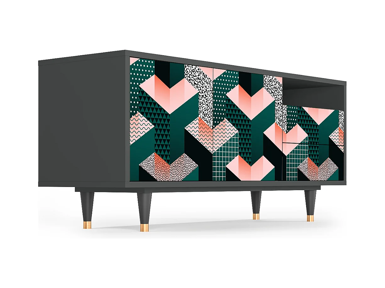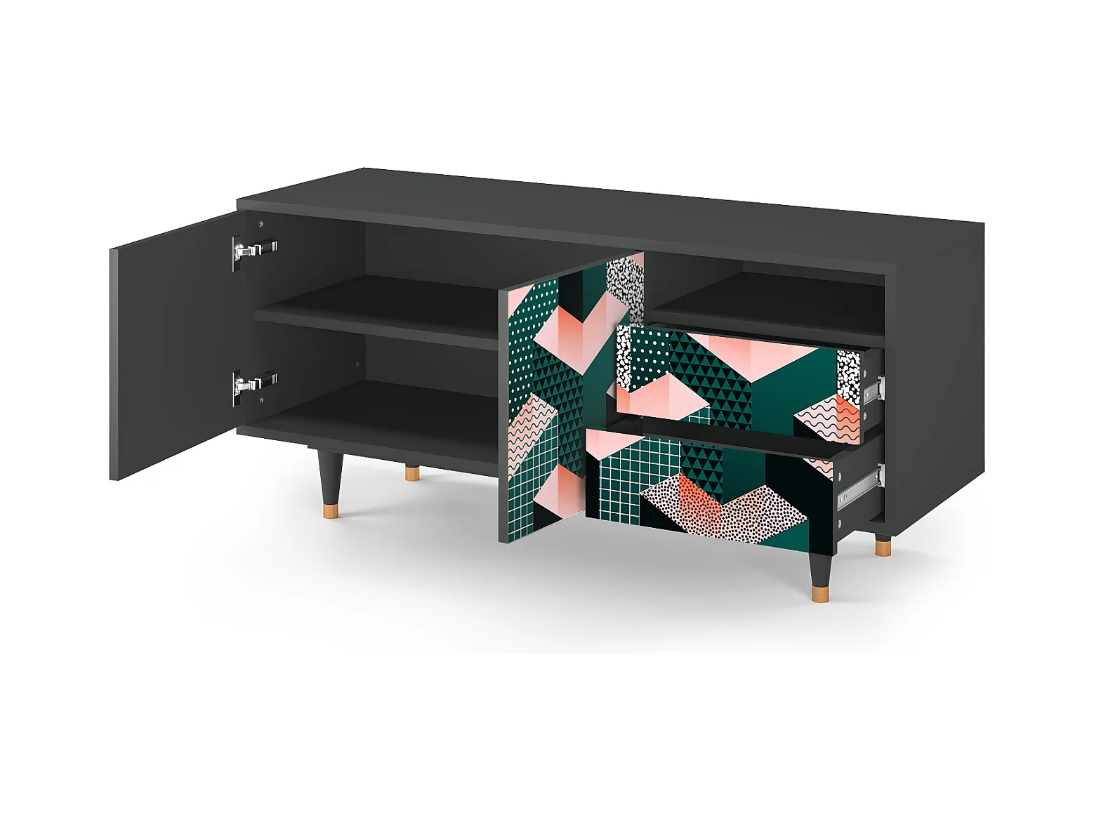 Meuble TV - 125х56х41 cm - T7 - Geometric Madness, Anthracite