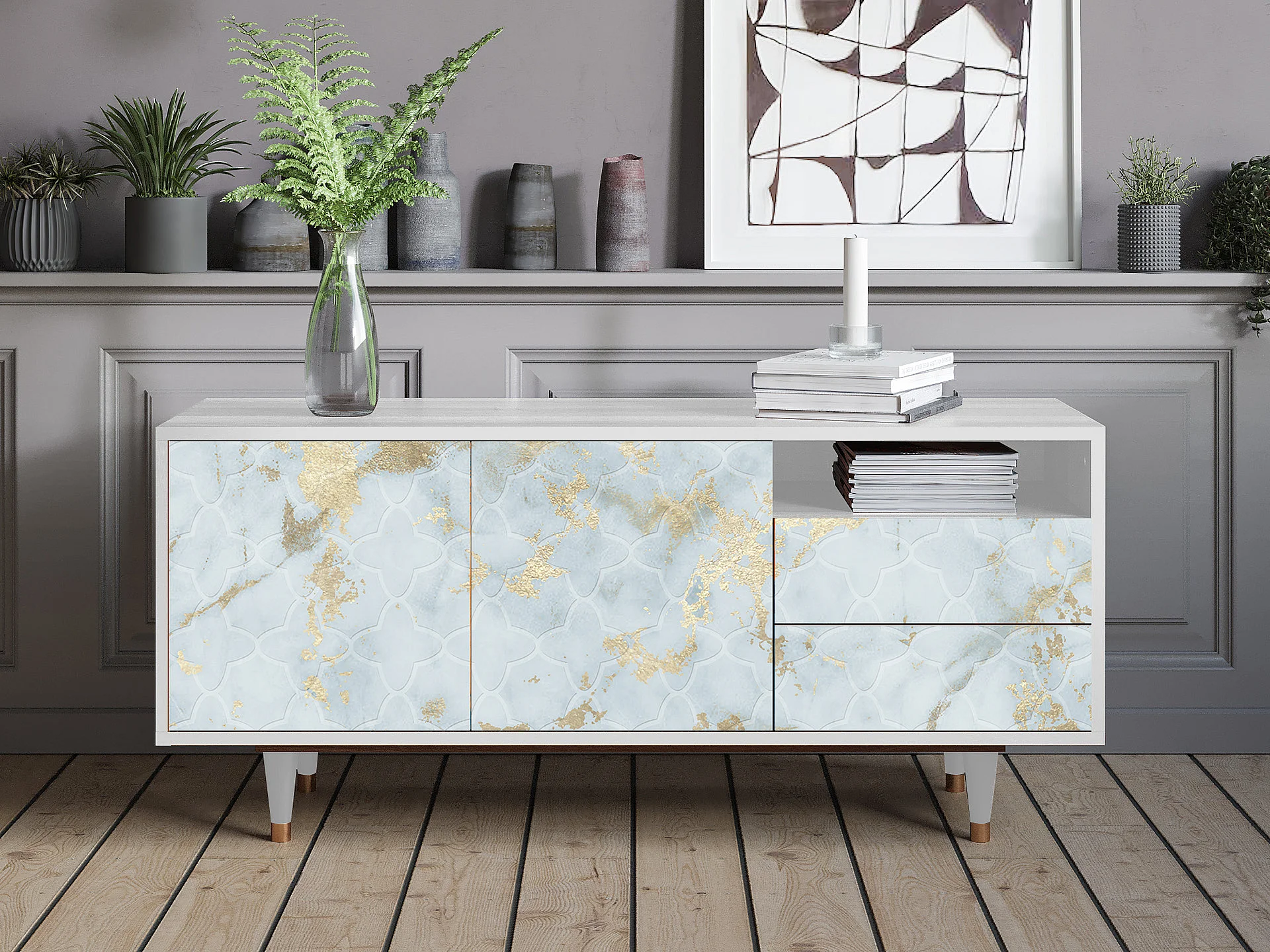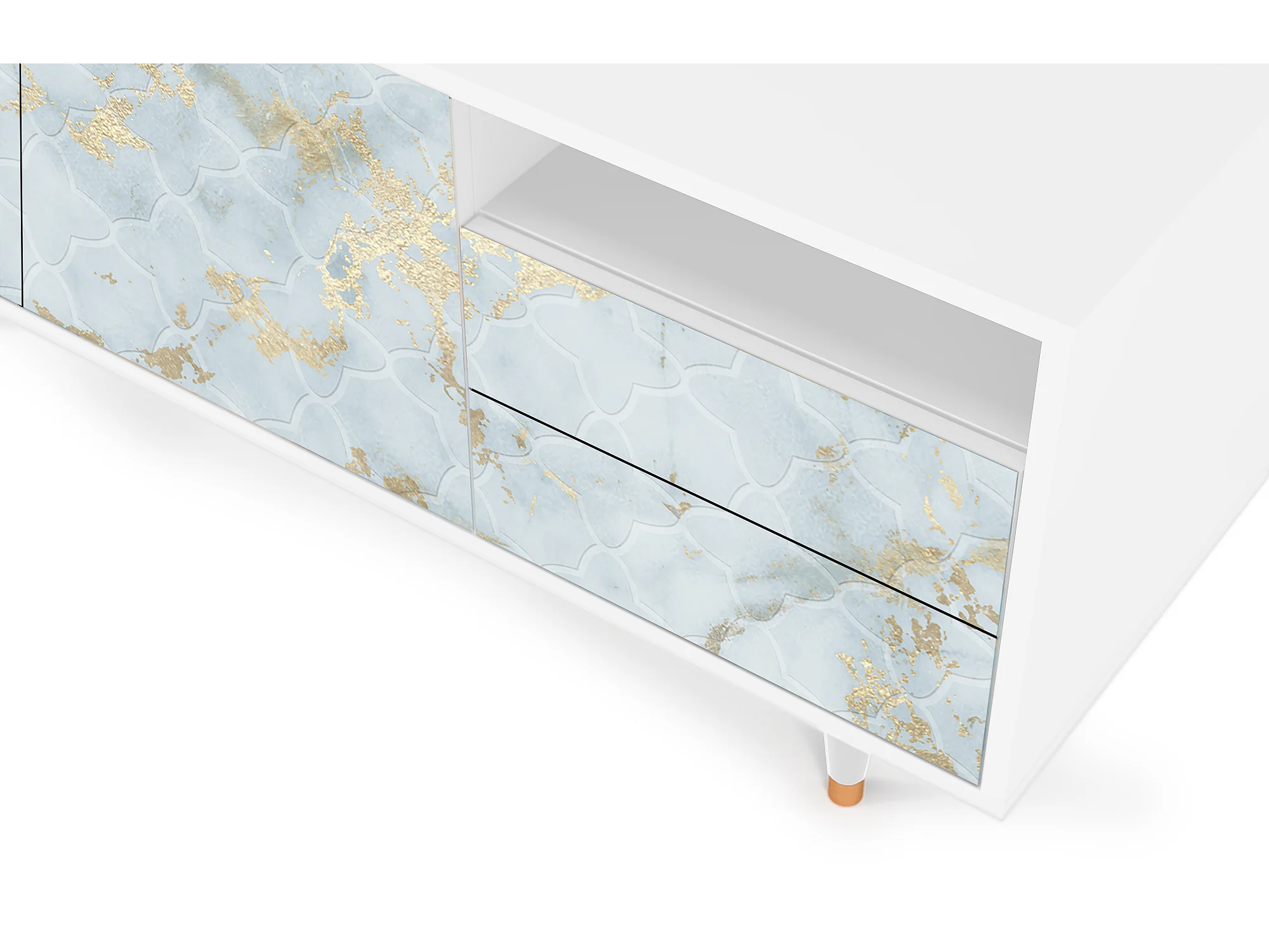 Meuble TV - 125х56х41 cm - T7 - Golden Waves, Blanc