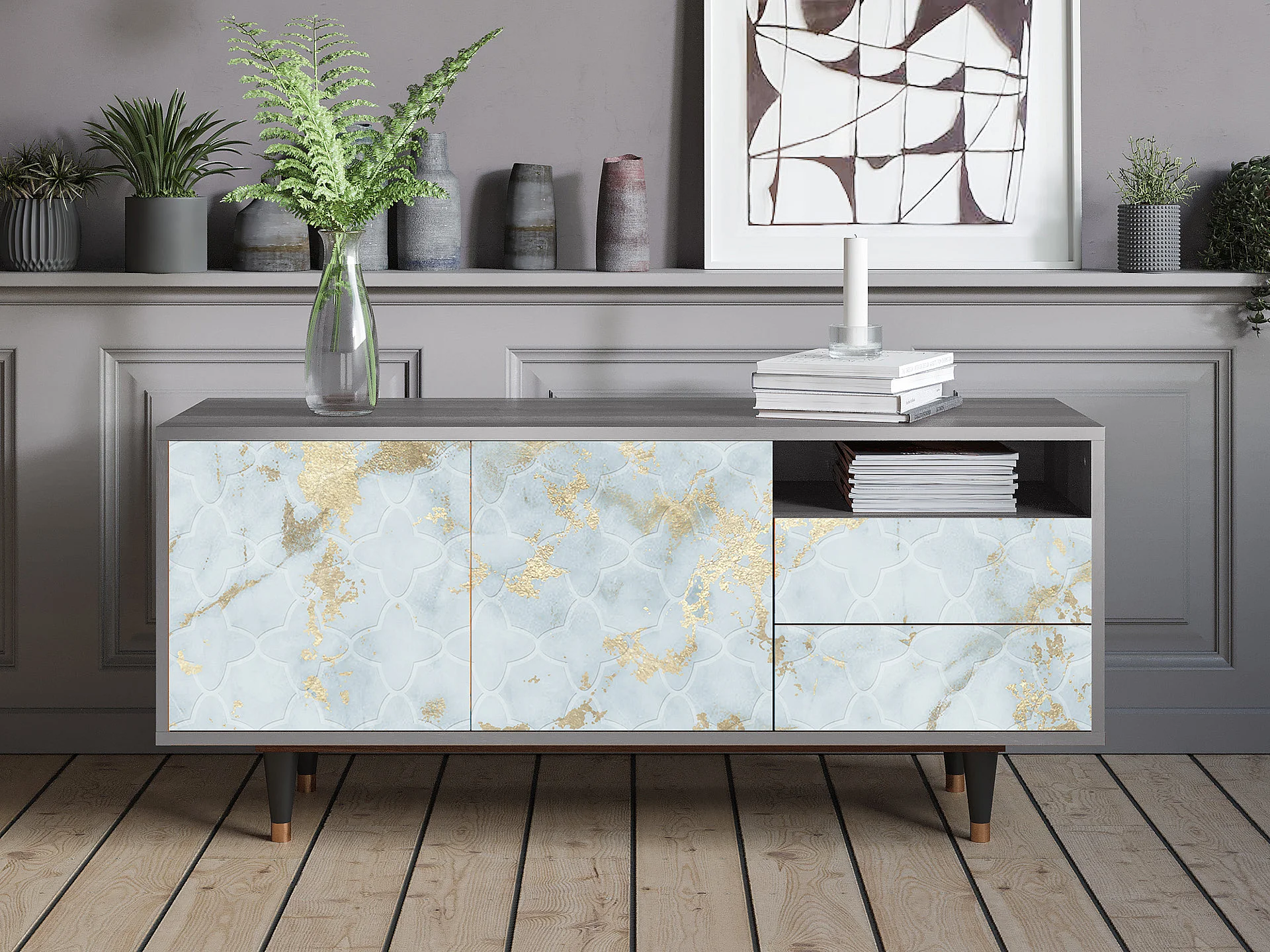 Meuble TV - 125х56х41 cm - T7 - Golden Waves, Gris