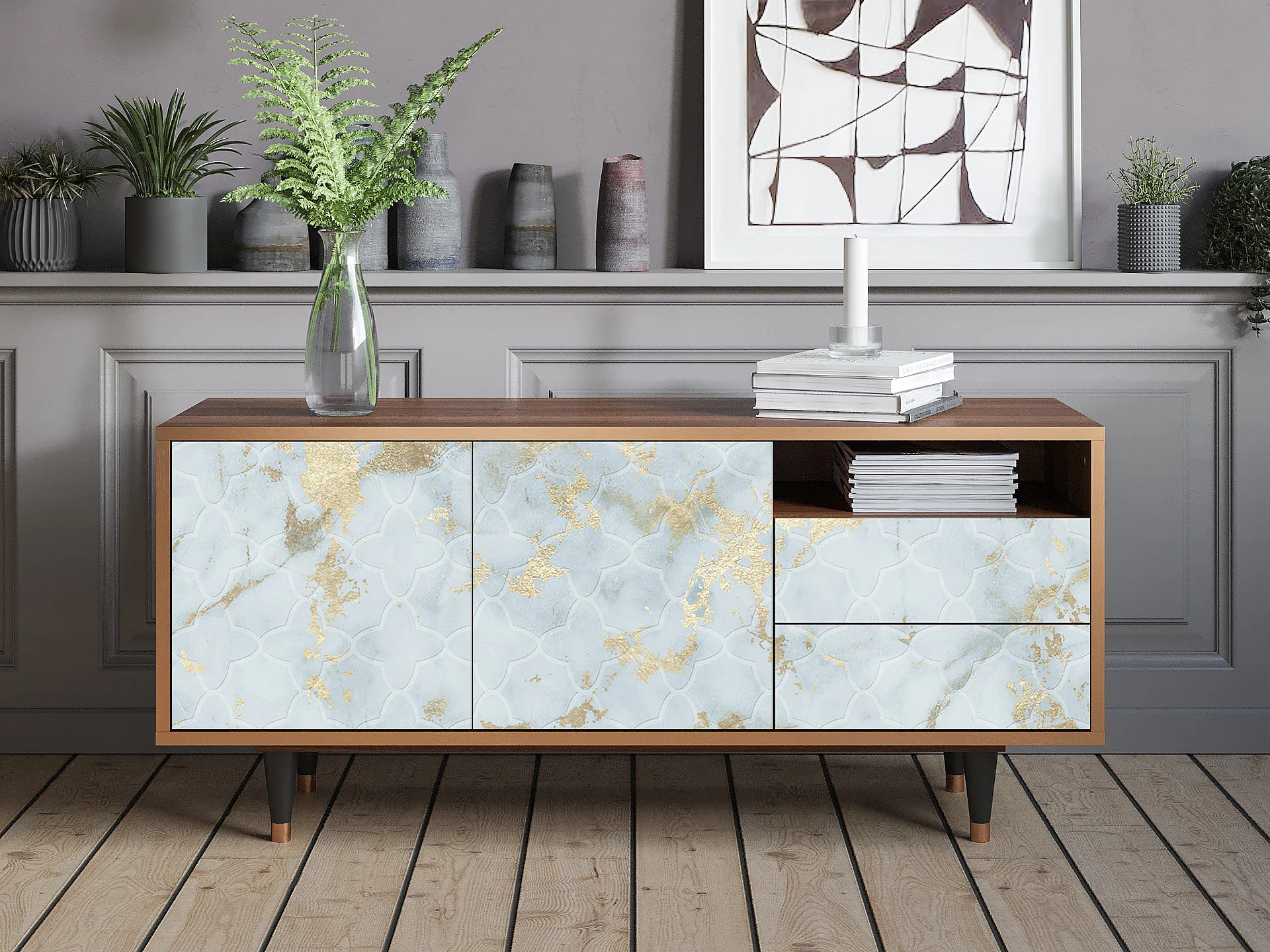 Meuble TV - 125х56х41 cm - T7 - Golden Waves, Noyer
