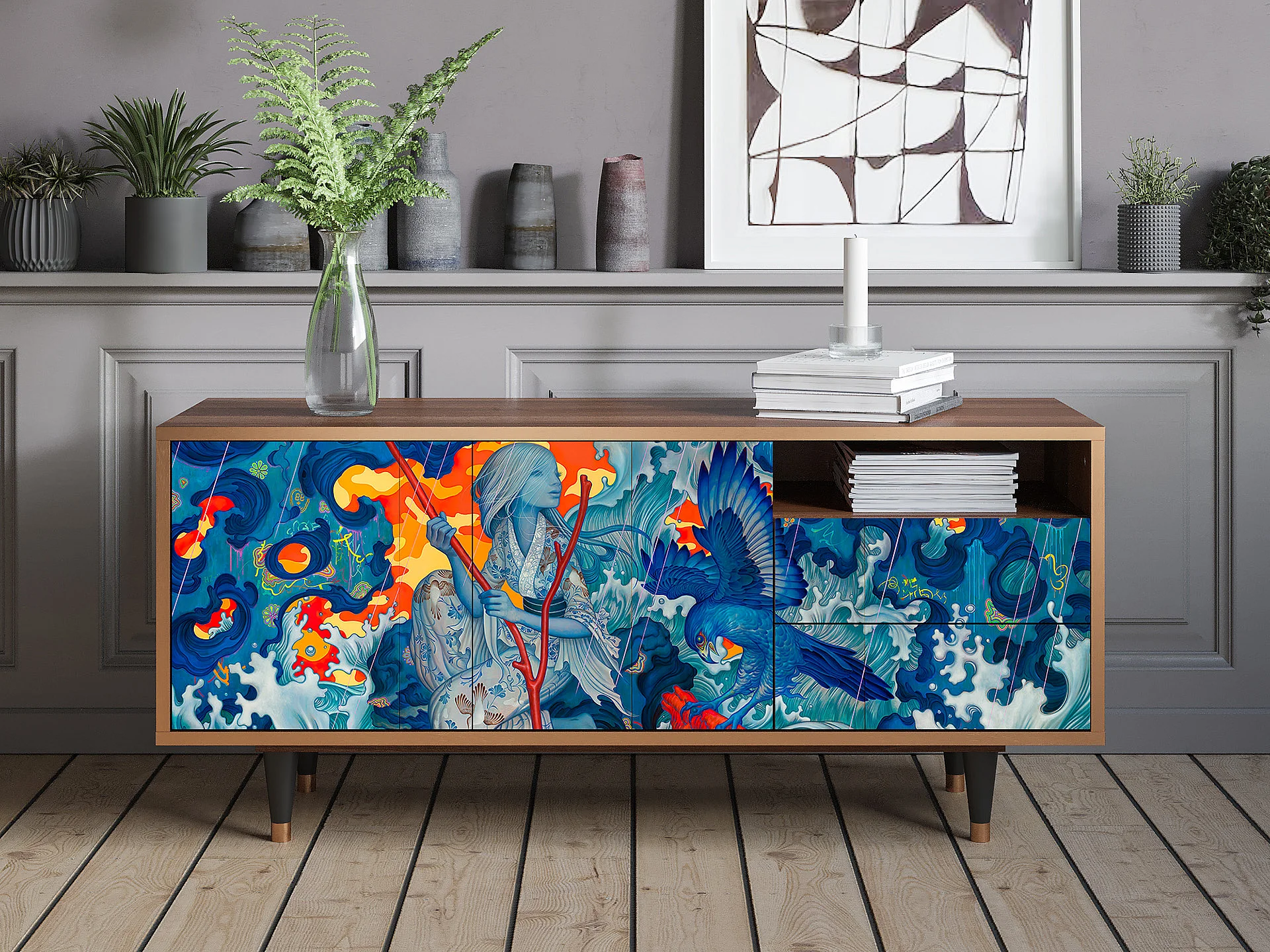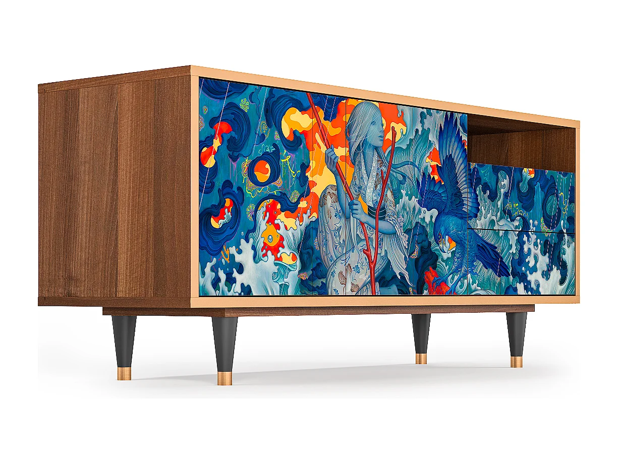 Meuble TV - 125х56х41 cm - T7 - The Girl - James Jean, Noyer
