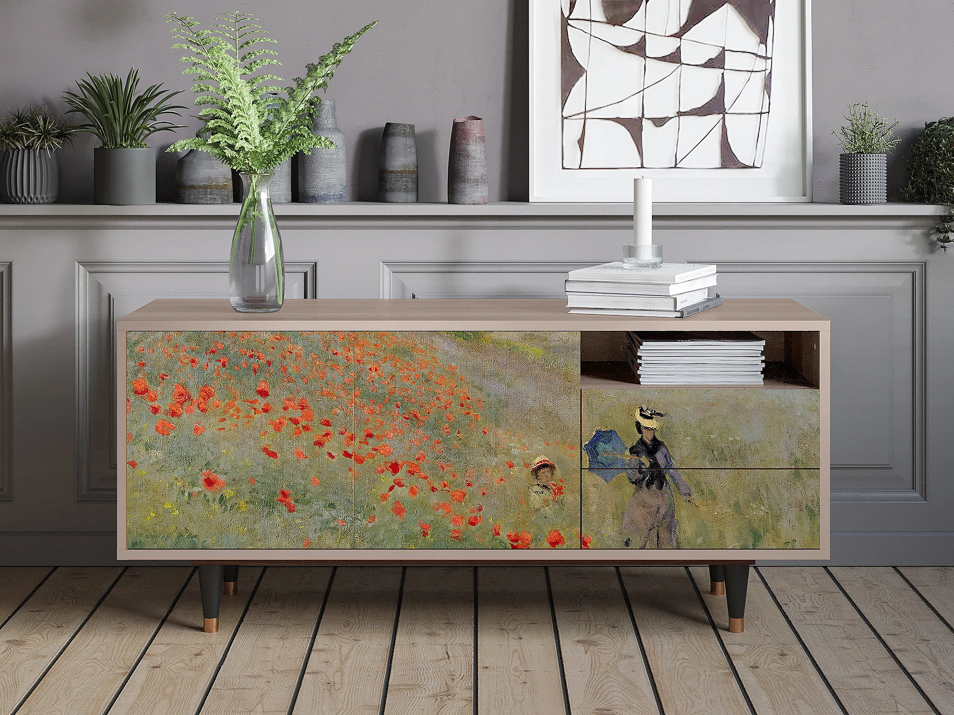 Meuble TV - 125х56х41 cm - T7 - The Poppy Field , Latte