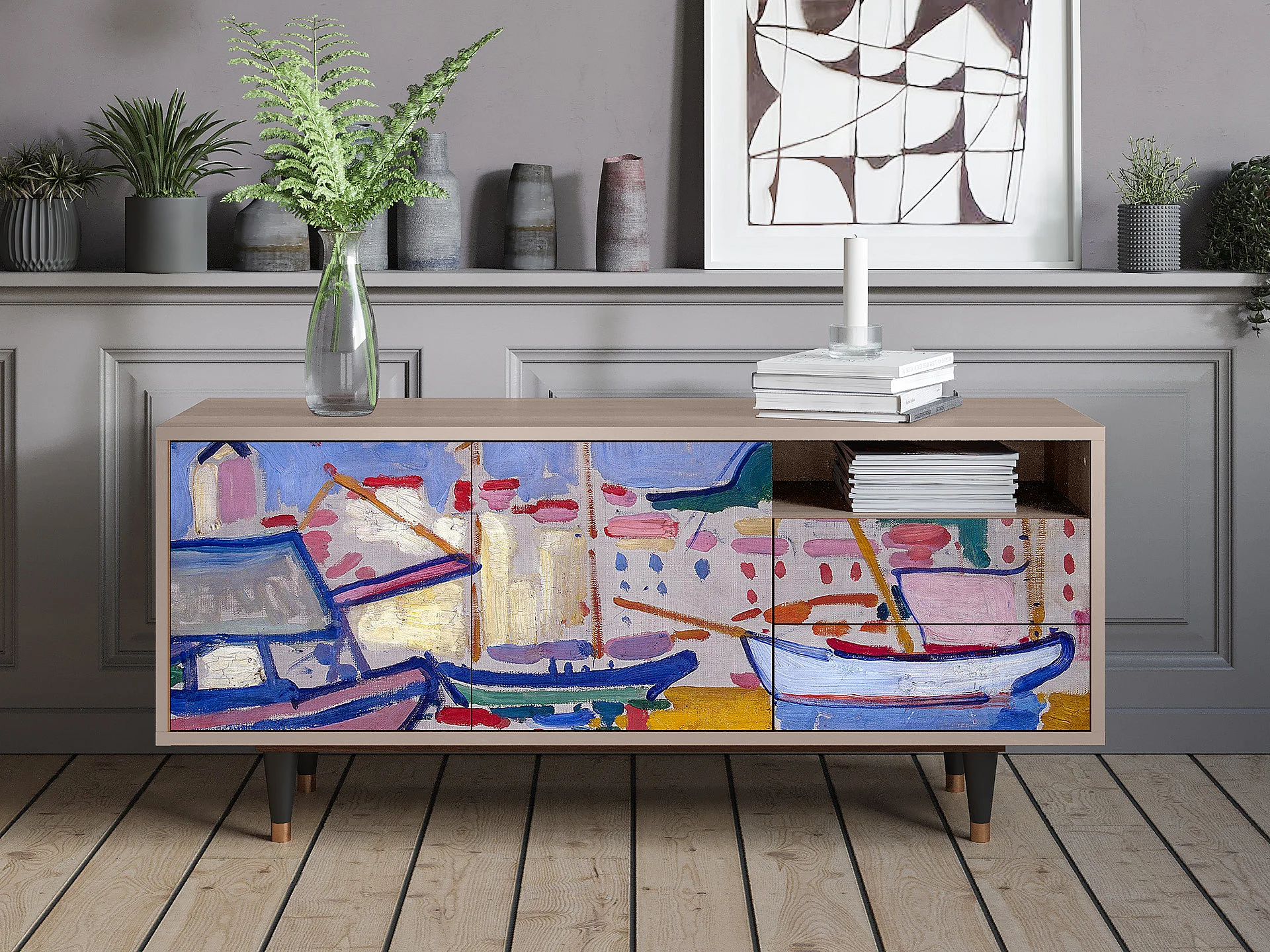 Meuble TV - 125х56х41 cm - T7 - The Port of Collioure , Latte