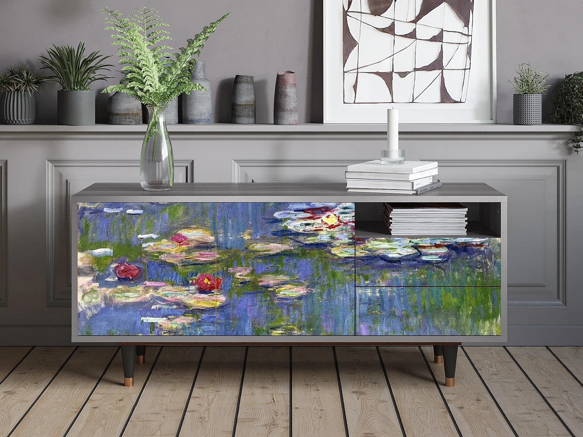 Meuble TV - 125х56х41 cm - T7 - The water lily pond , Gris