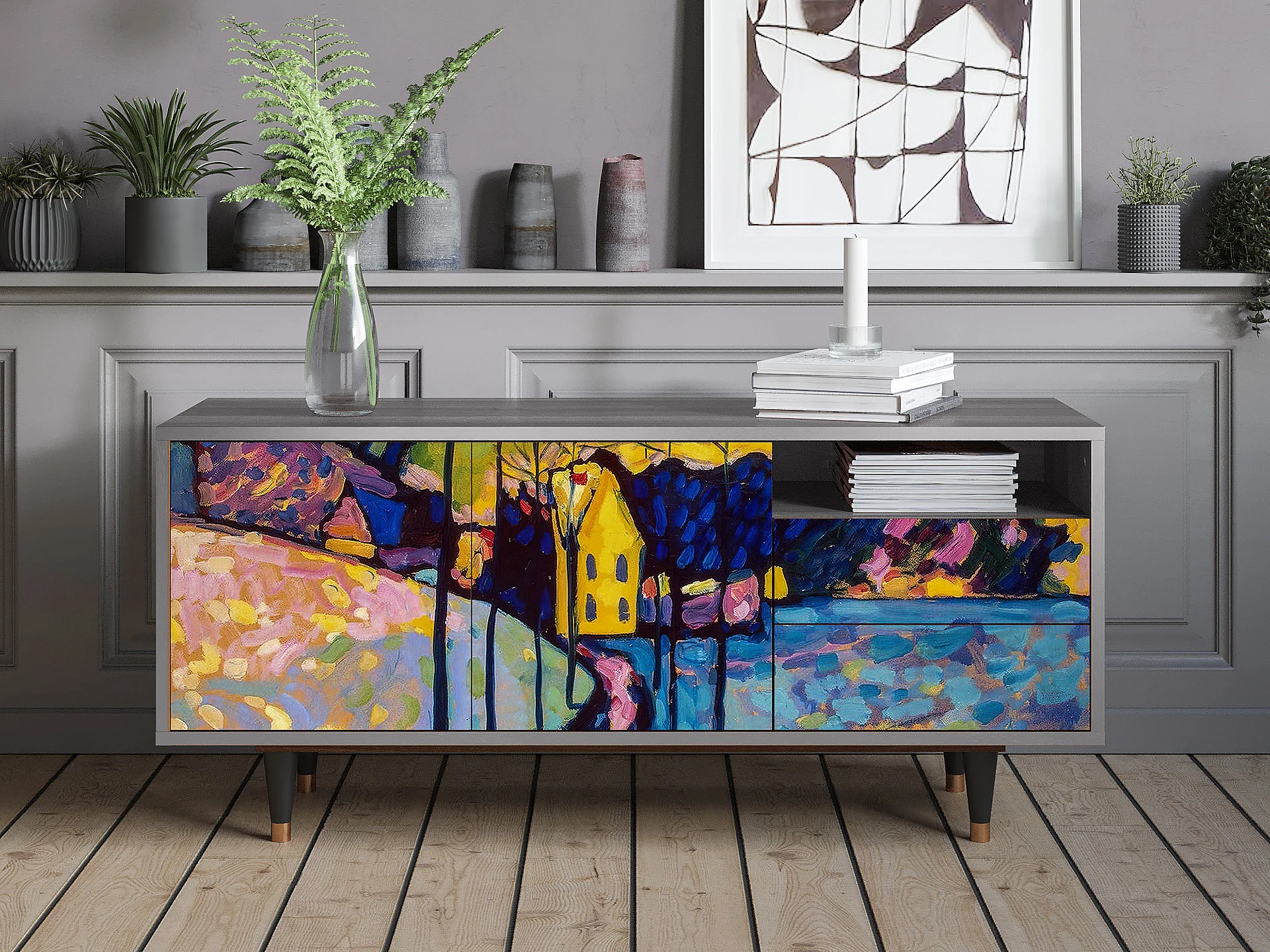 Meuble TV - 125х56х41 cm - T7 - Winter Landscape, Gris