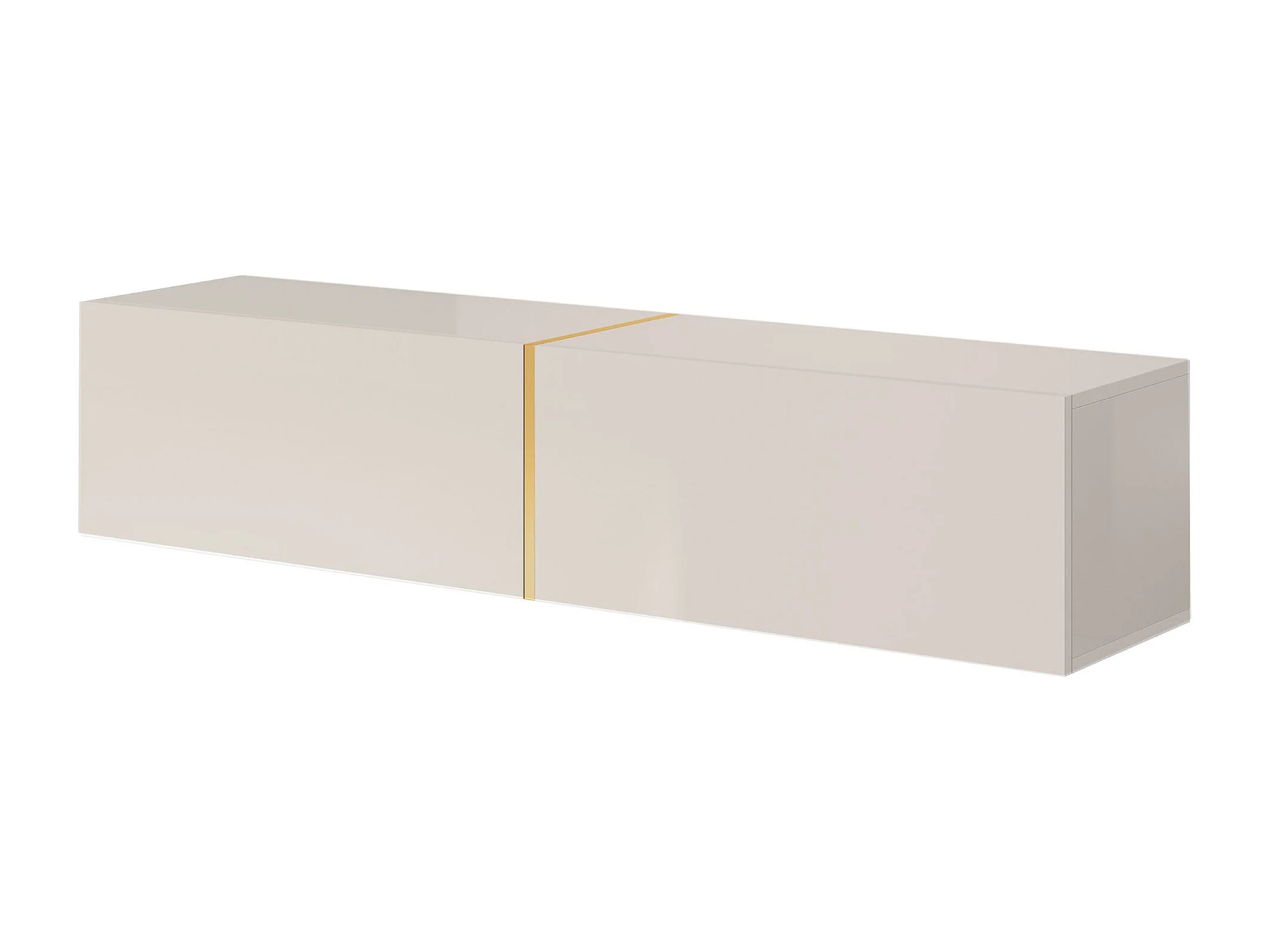 Meuble TV - 140 cm - taupe (gris-beige) avec insert doré - BISIRA
