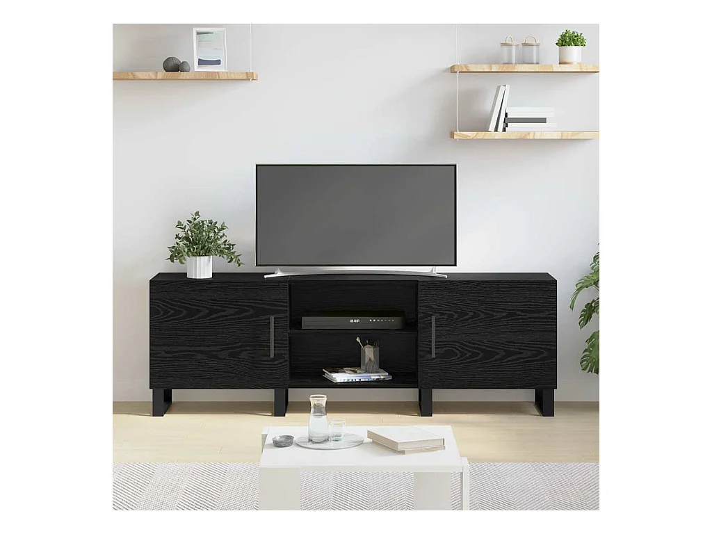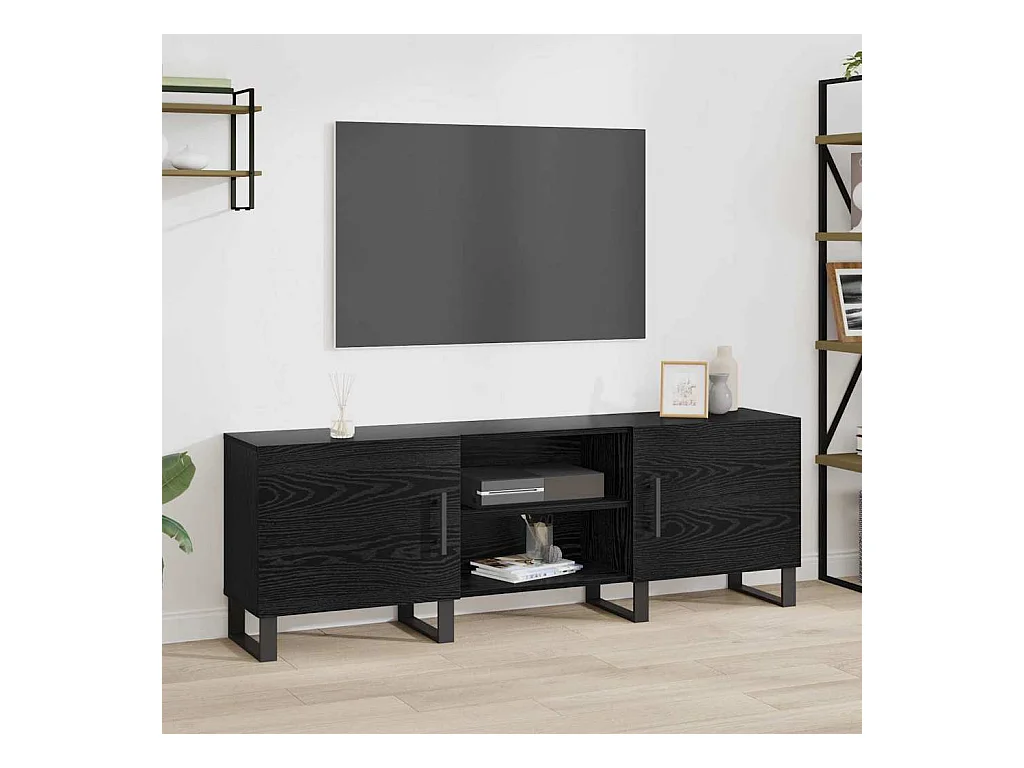Meuble TV Noir Chêne 150x30x50 cm Bois d'ingénierie