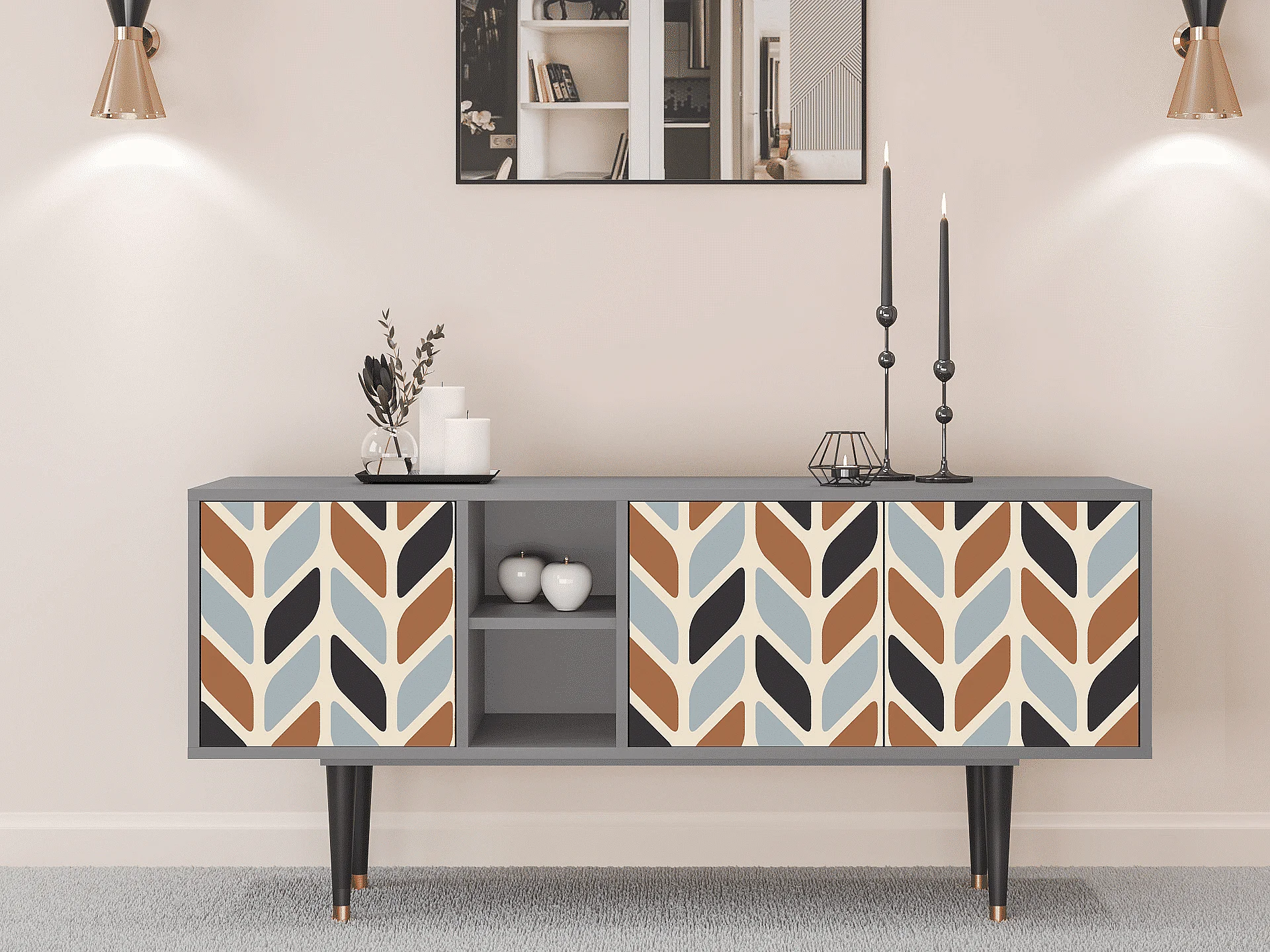Meuble TV - 150х69х41 cm - T5 - Beige Laure, Gris