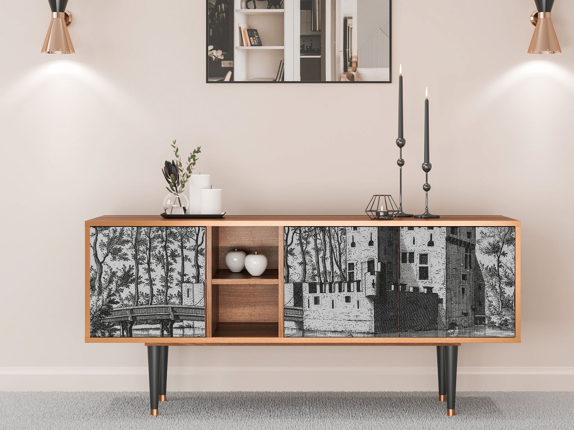 Meuble TV - 150х69х41 cm - T5 - Light Peonies, Noyer