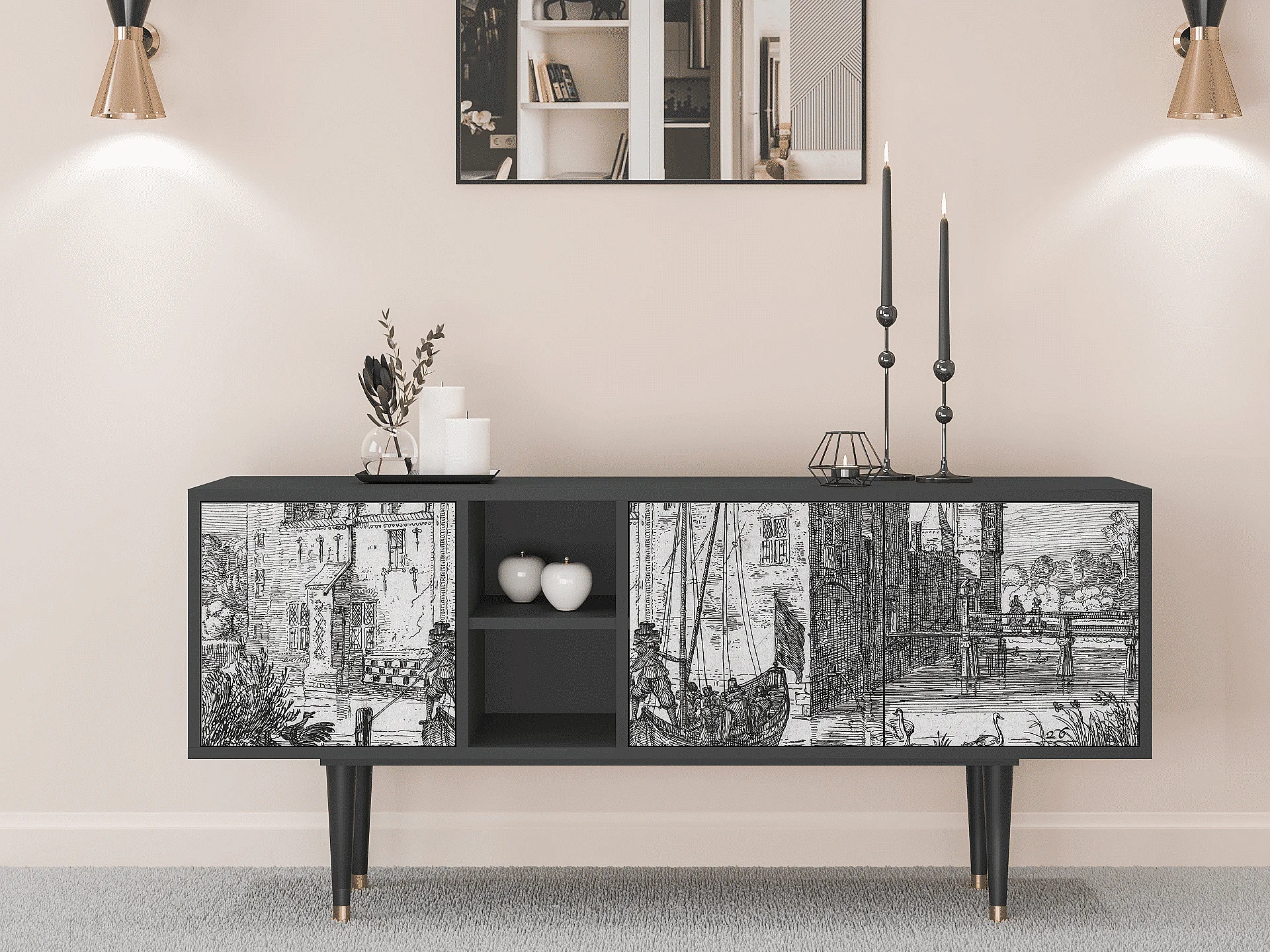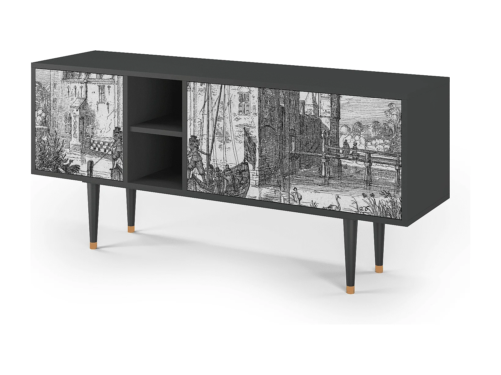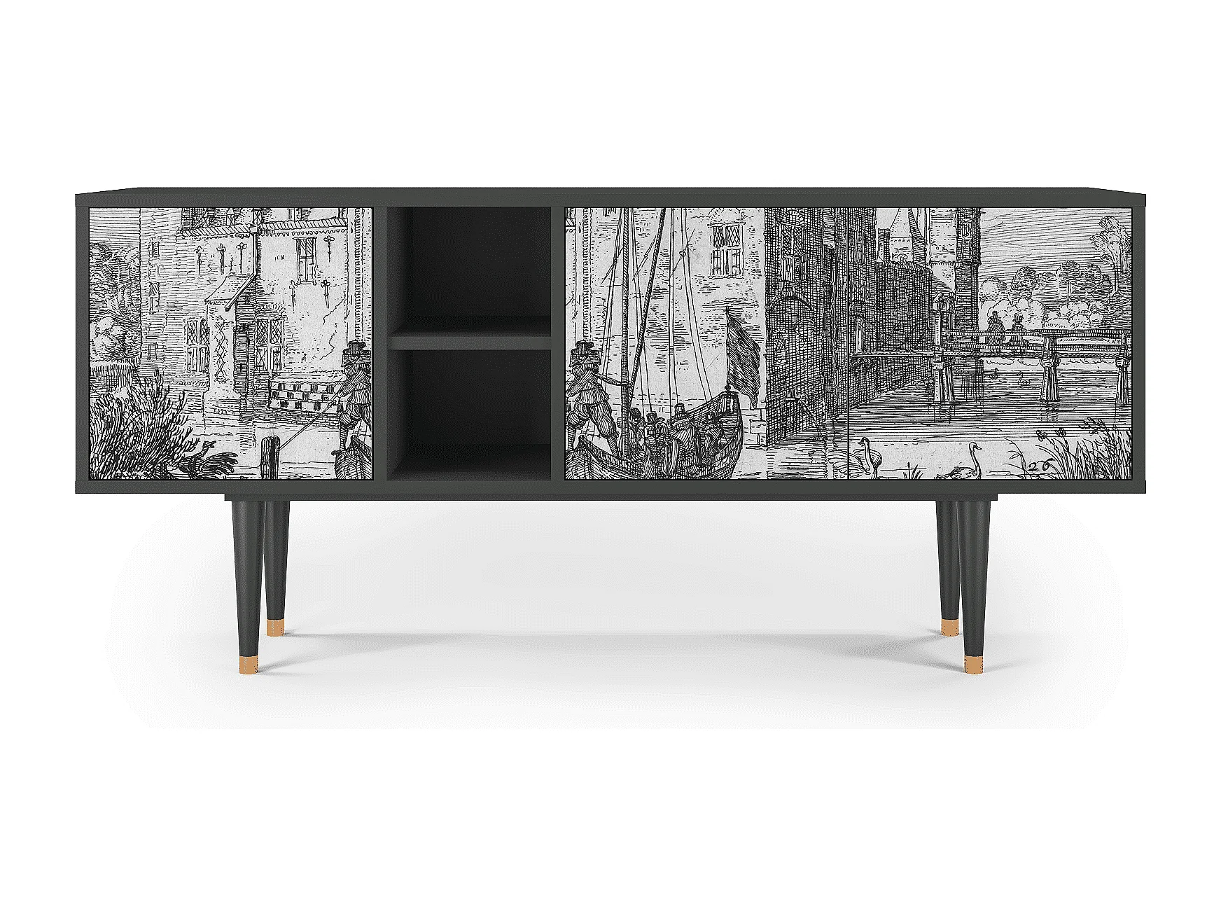 Meuble TV - 150х69х41 cm - T5 - Castle with Bridge, Anthracite