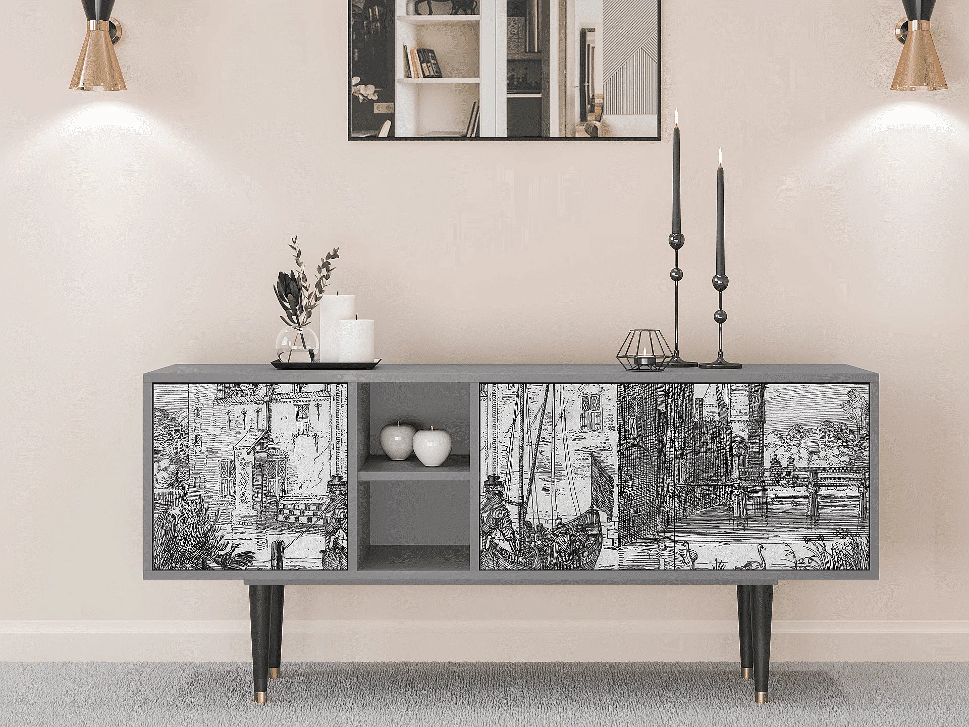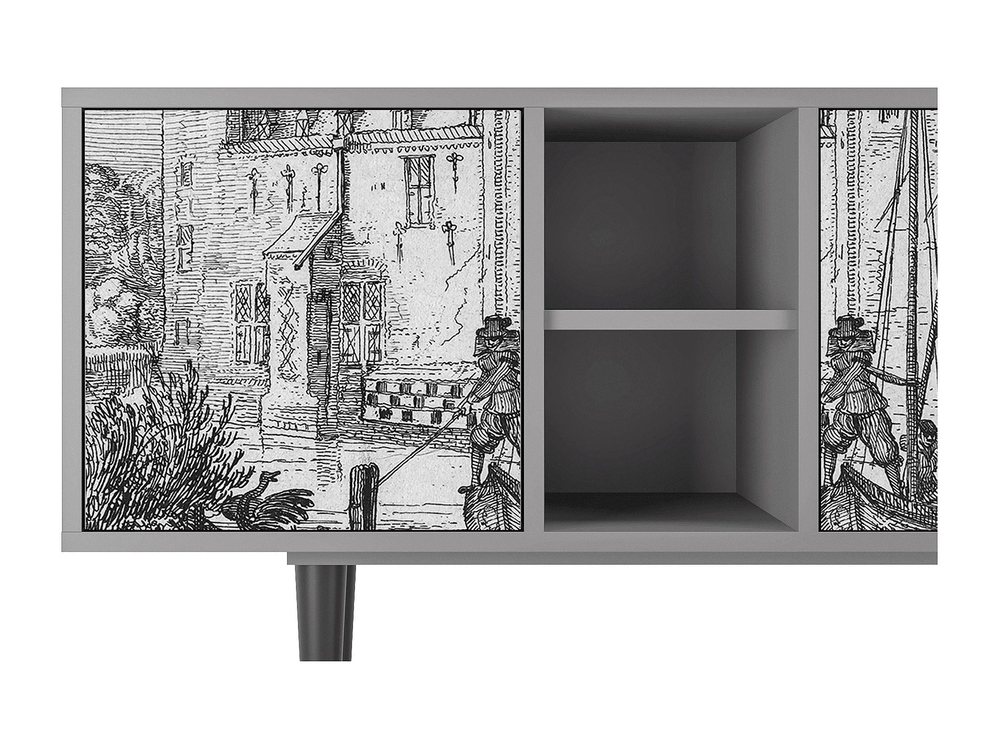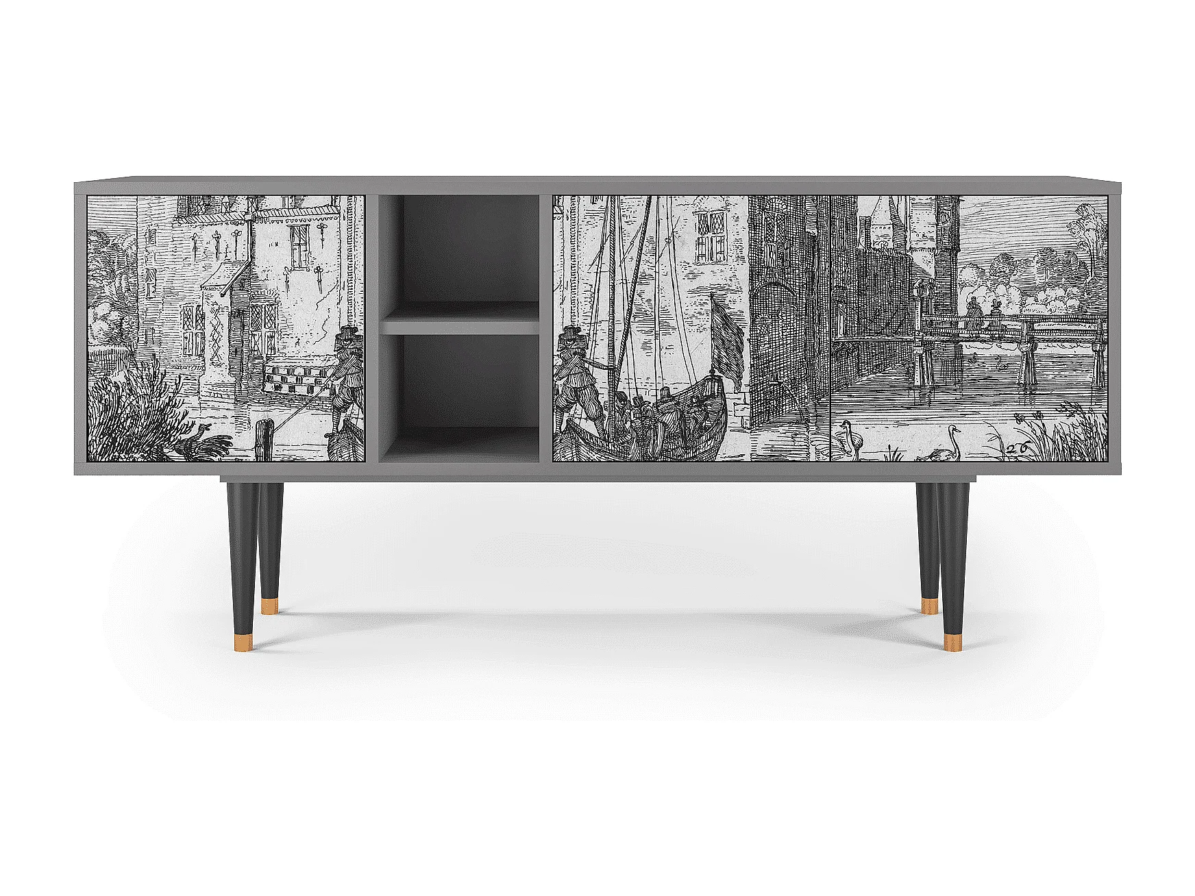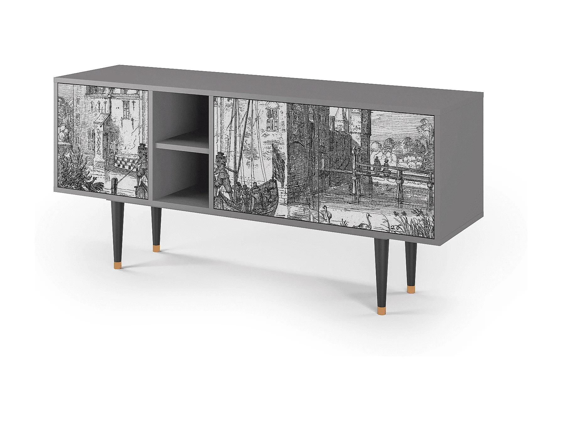 Meuble TV - 150х69х41 cm - T5 - Castle with Bridge, Gris