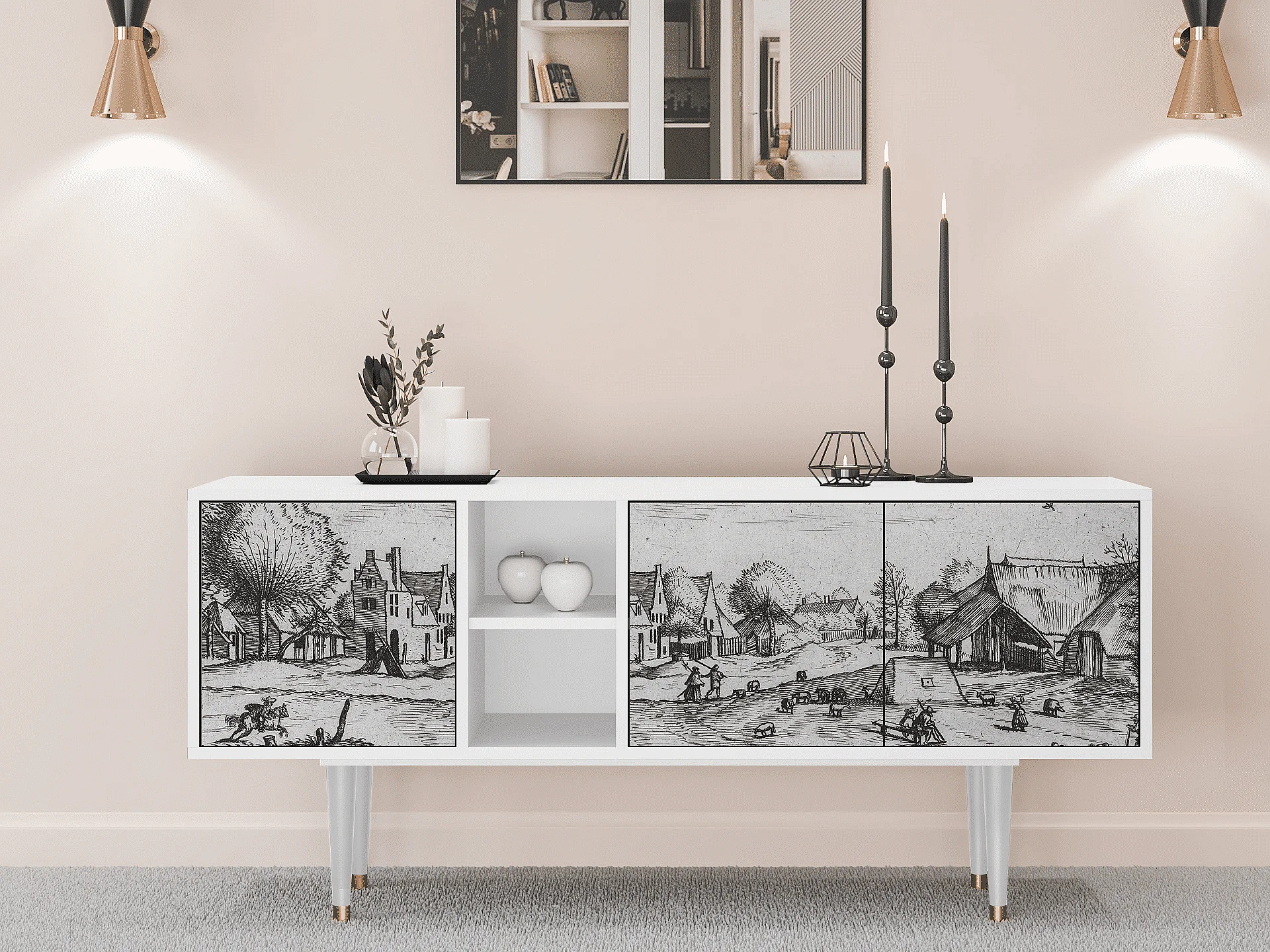 Meuble TV - 150х69х41 cm - T5 - Country Village, Blanc