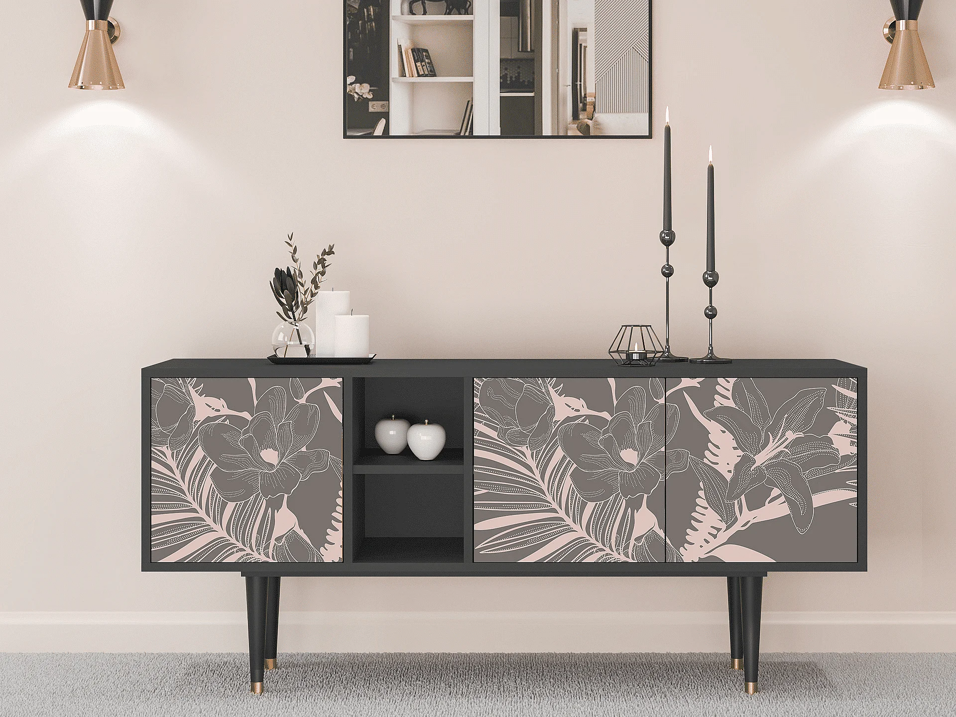 Meuble TV - 150х69х41 cm - T5 - Issabelline Flower, Anthracite