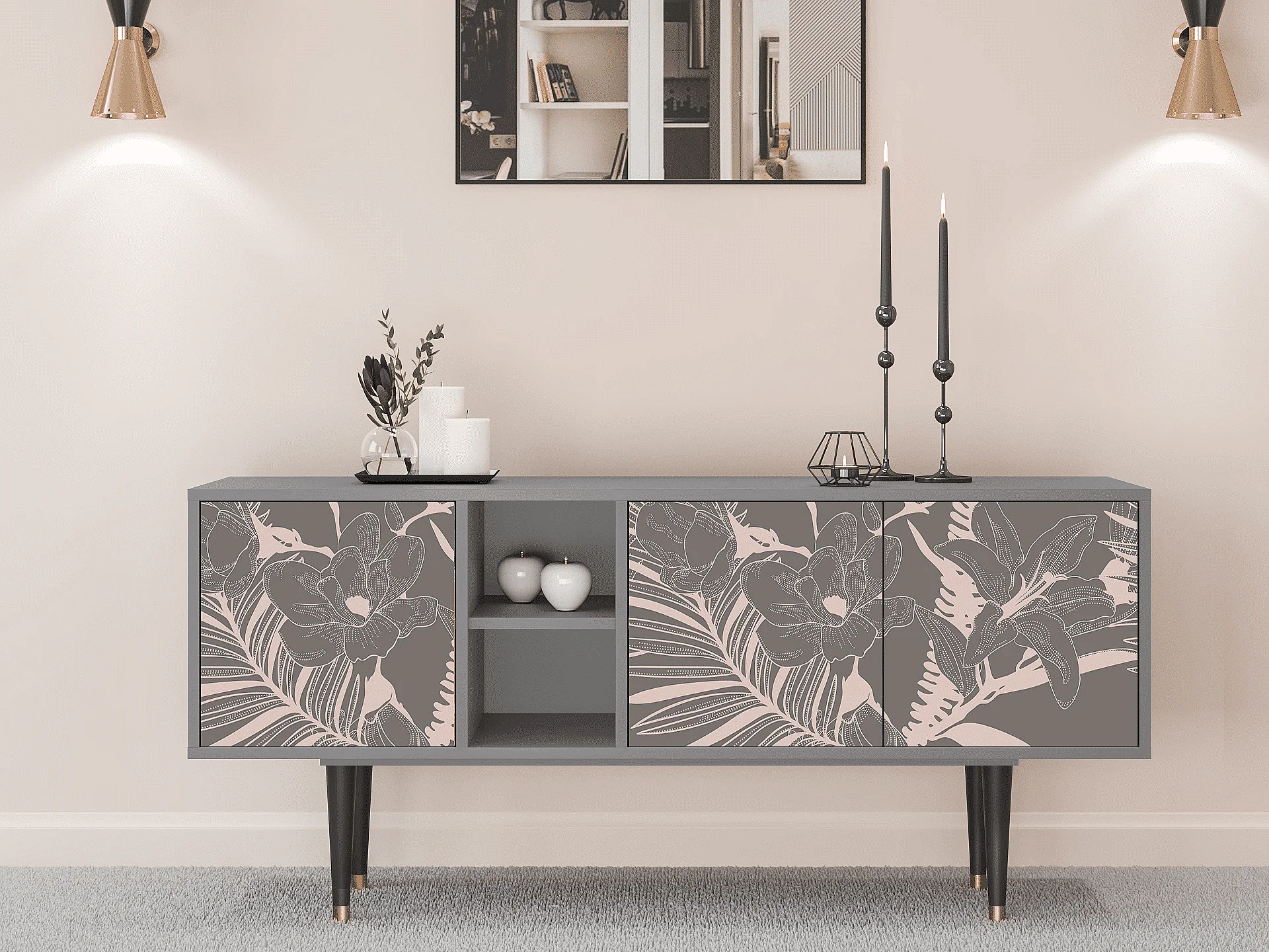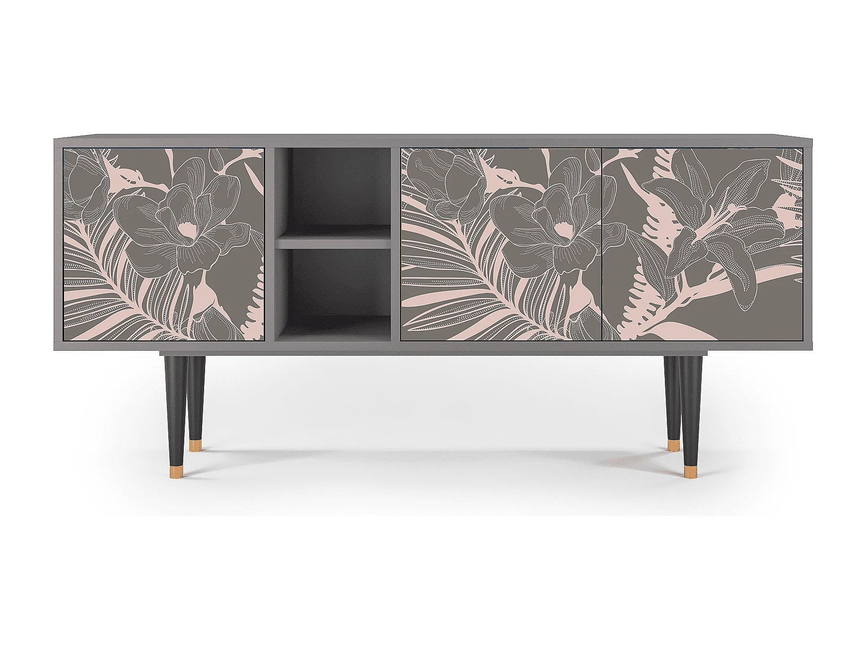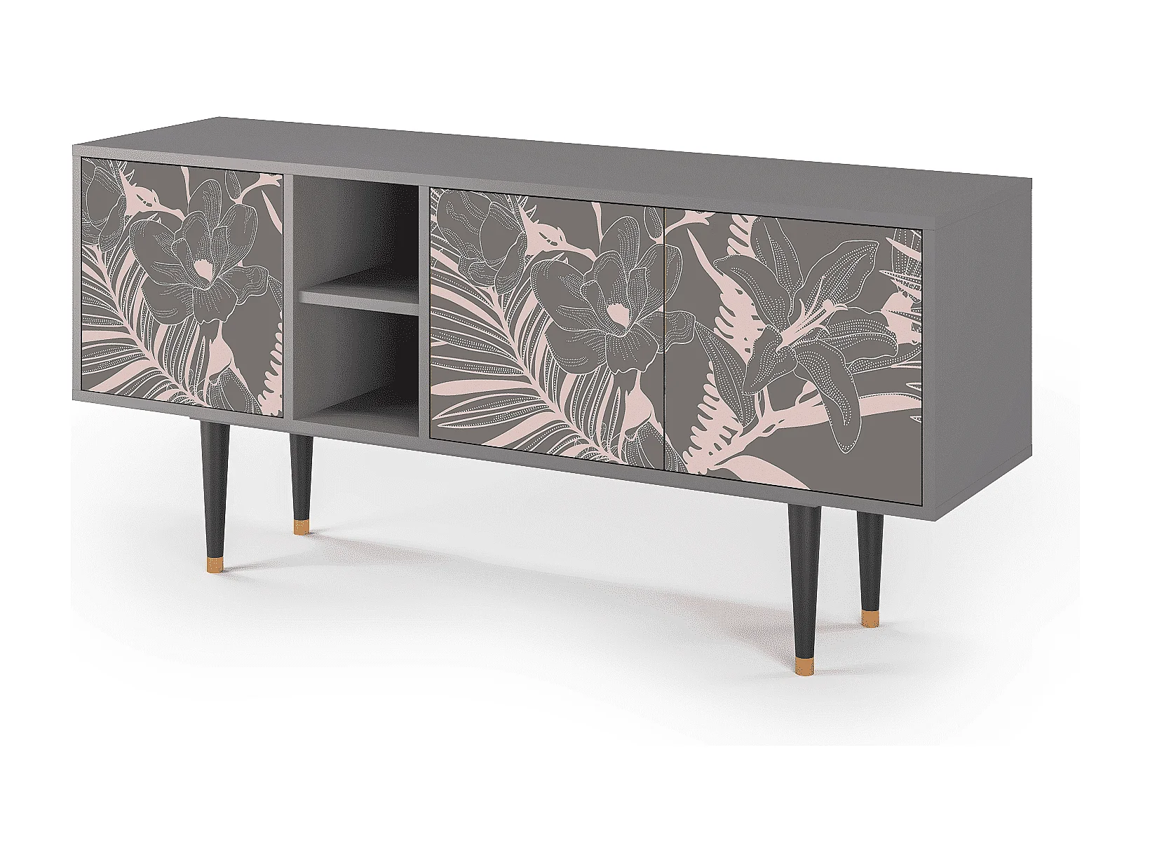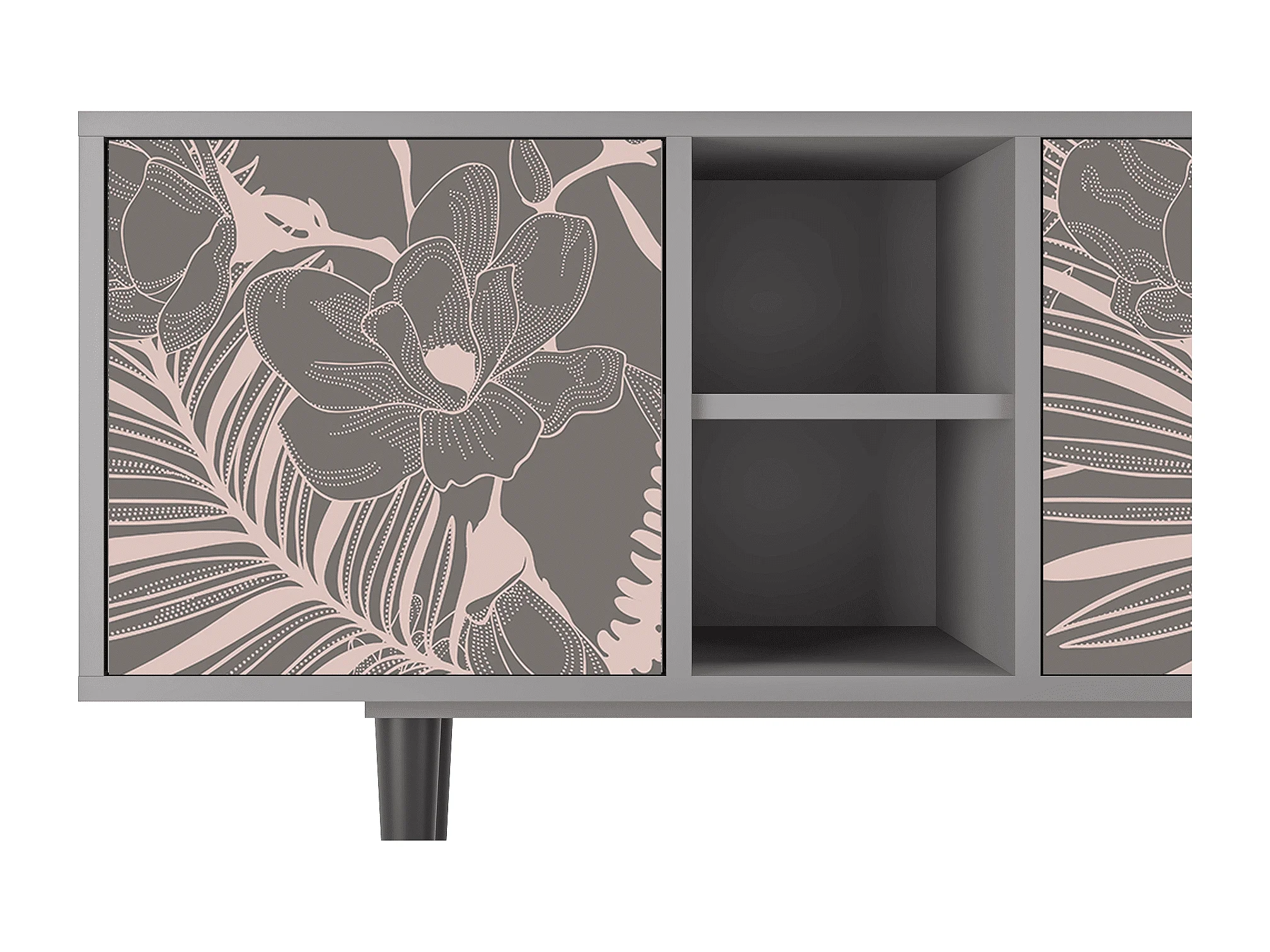 Meuble TV - 150х69х41 cm - T5 - Issabelline Flower, Gris