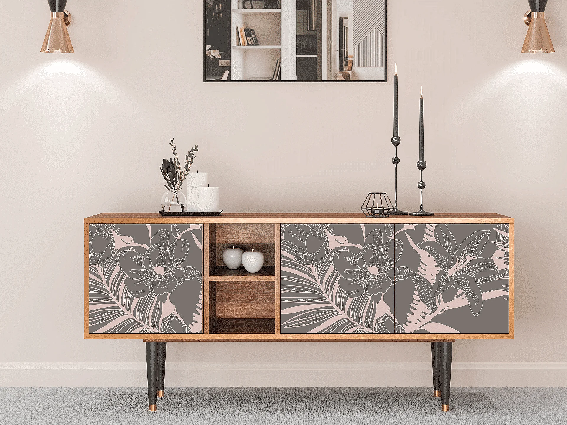 Meuble TV - 150х69х41 cm - T5 - Issabelline Flower, Noyer