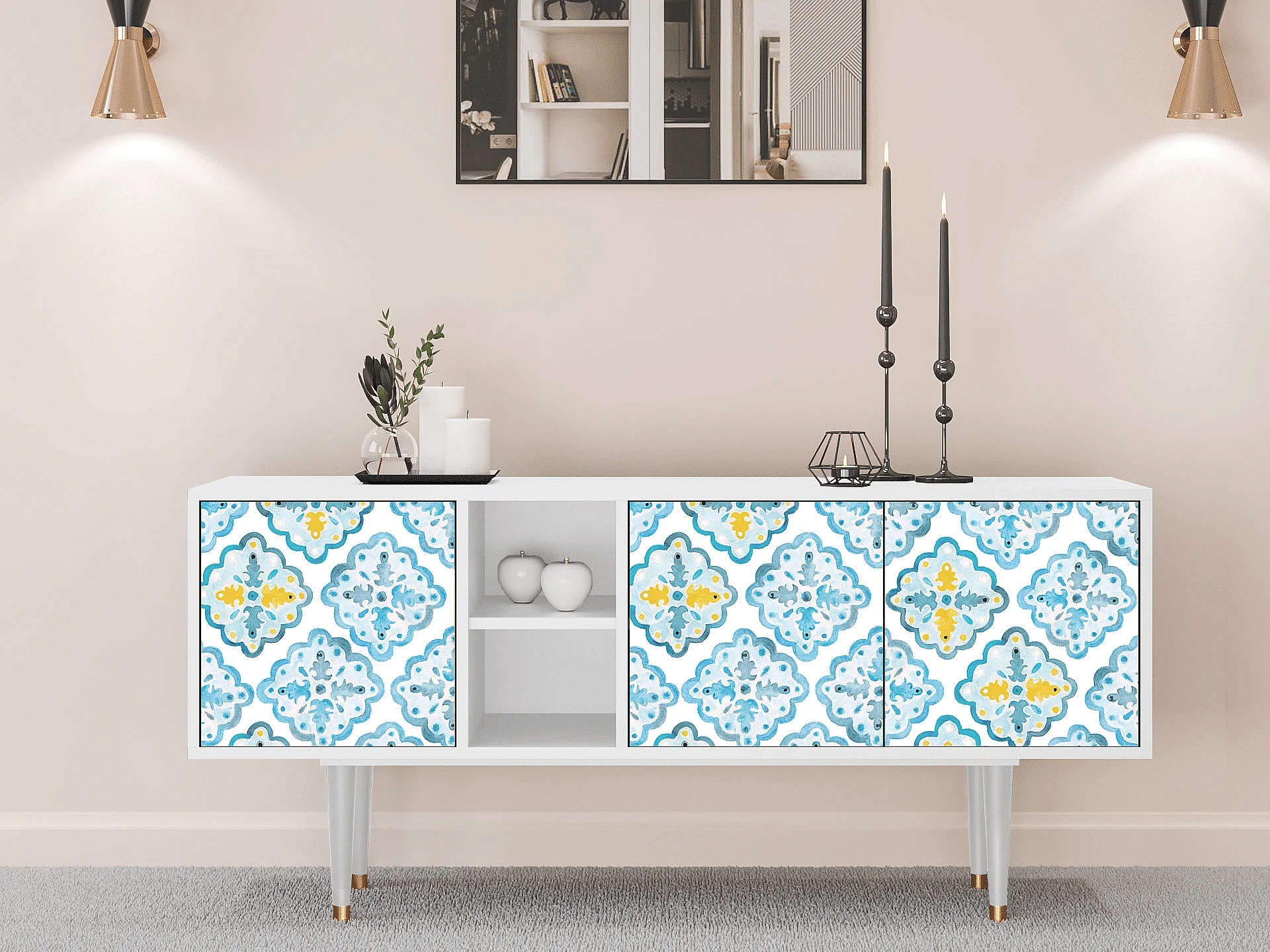 Meuble TV - 150х69х41 cm - T5 - Portugese tiles, Blanc