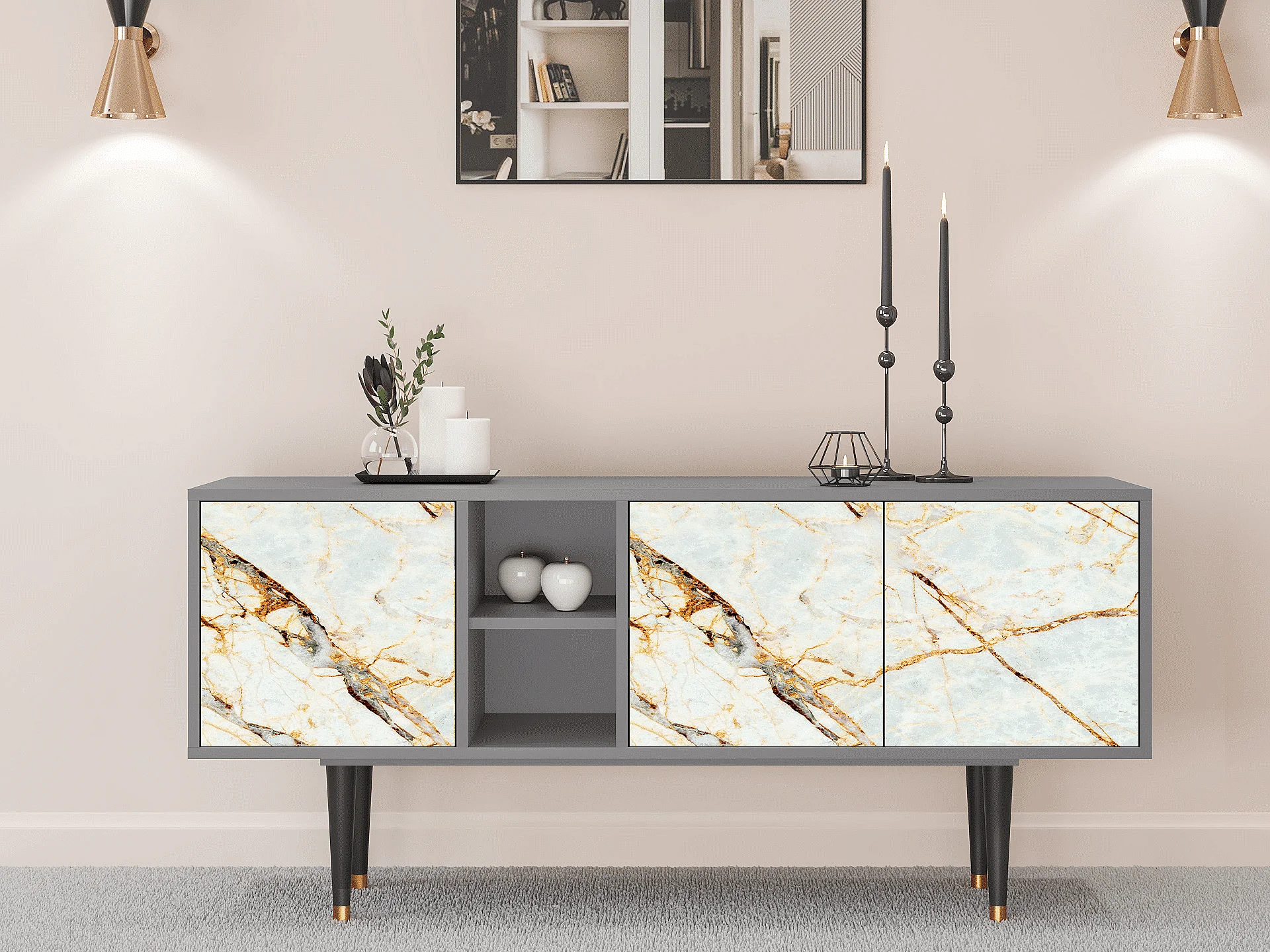 Meuble TV - 150х69х41 cm - T5 - Sabley Marble, Gris